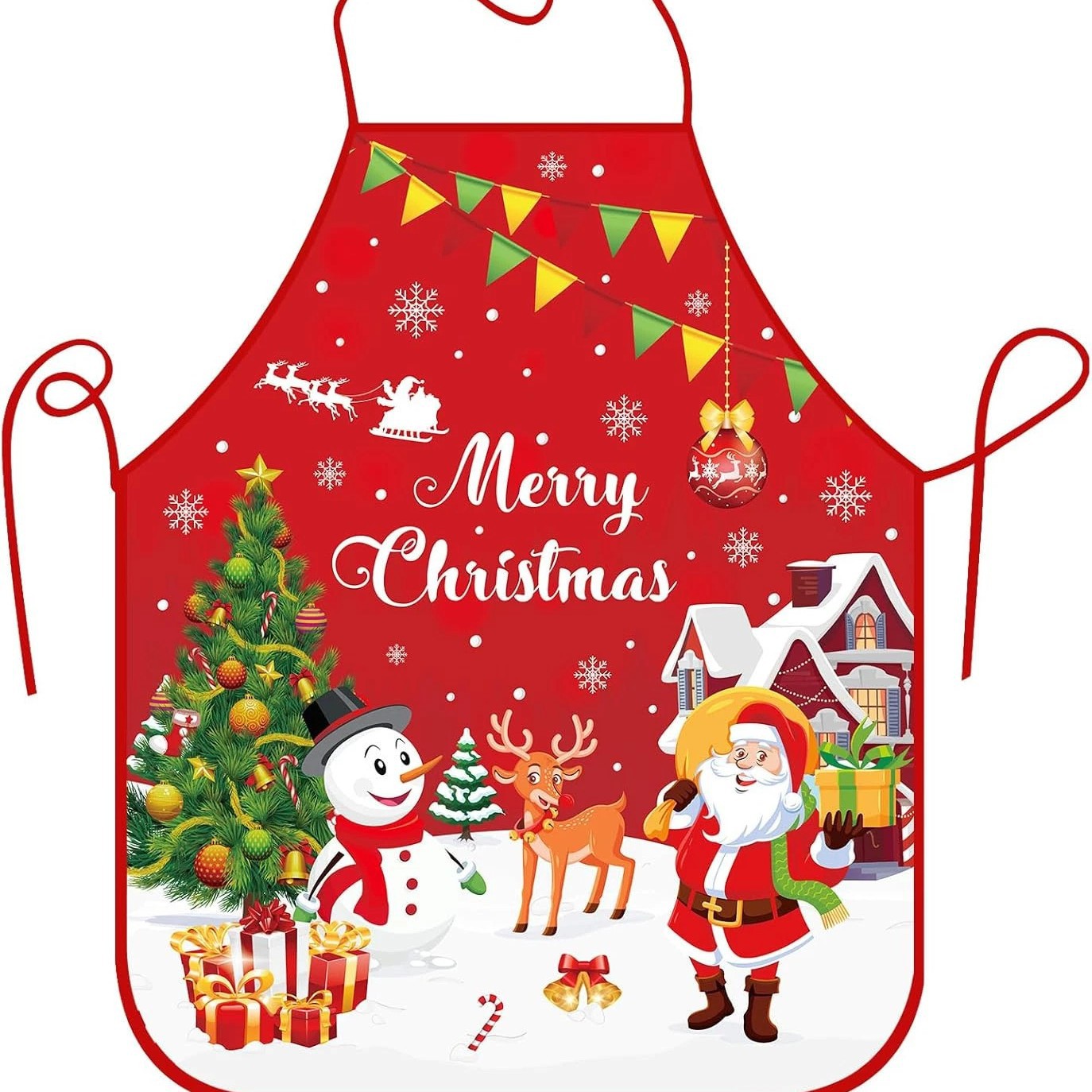 圣诞节装饰布艺彩印装饰挂脖围裙系带围腰防水防油跨境批发围裙