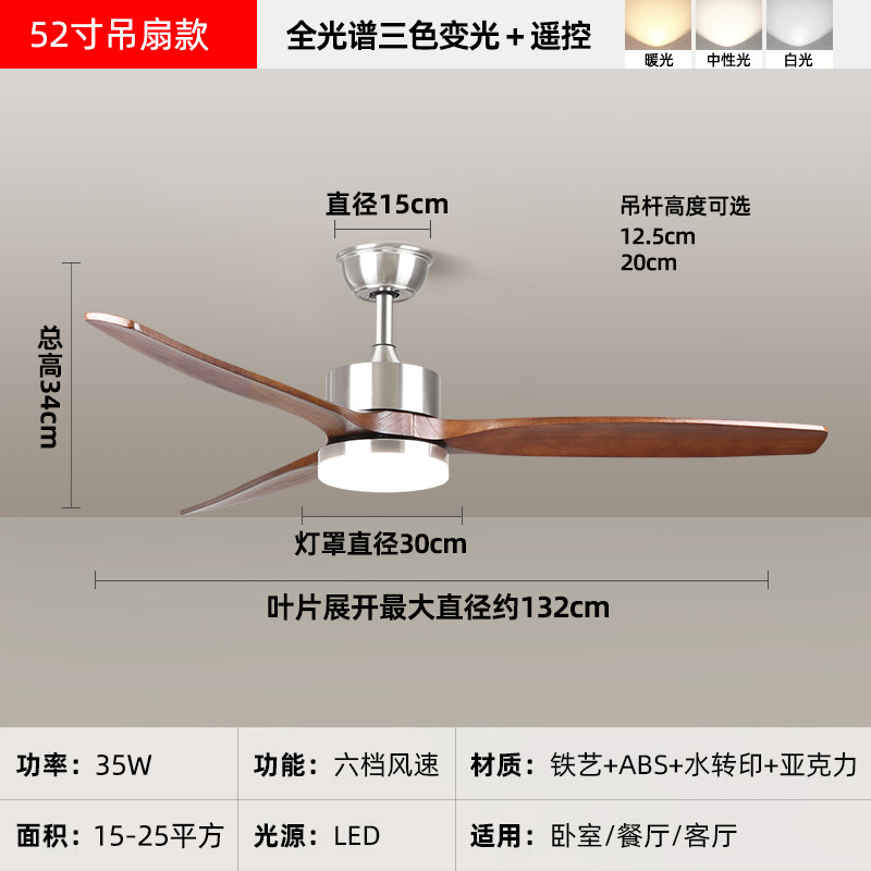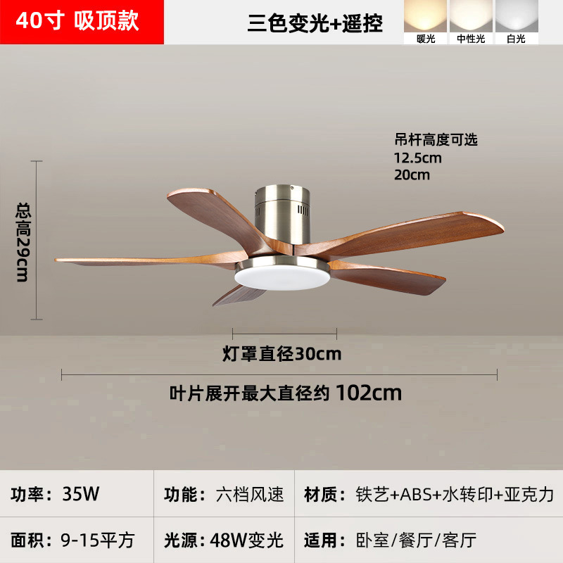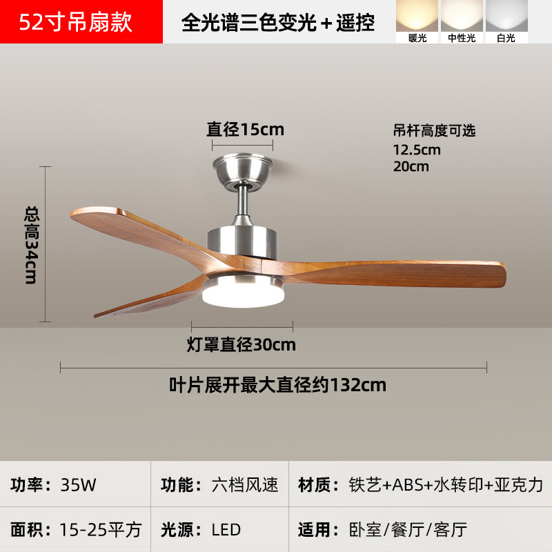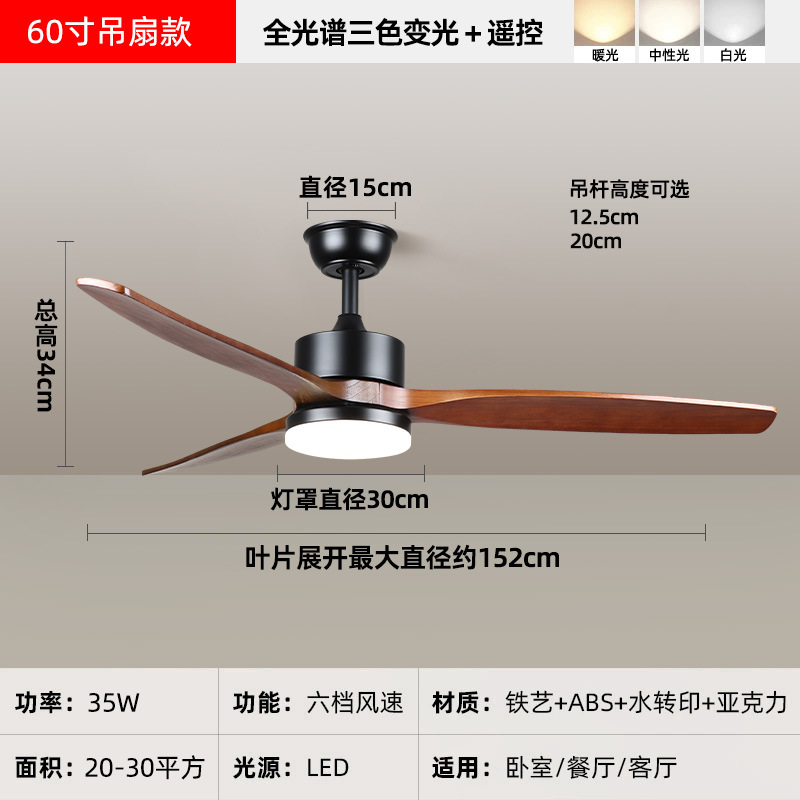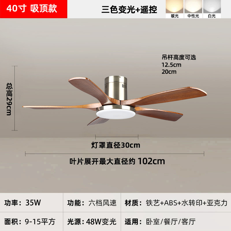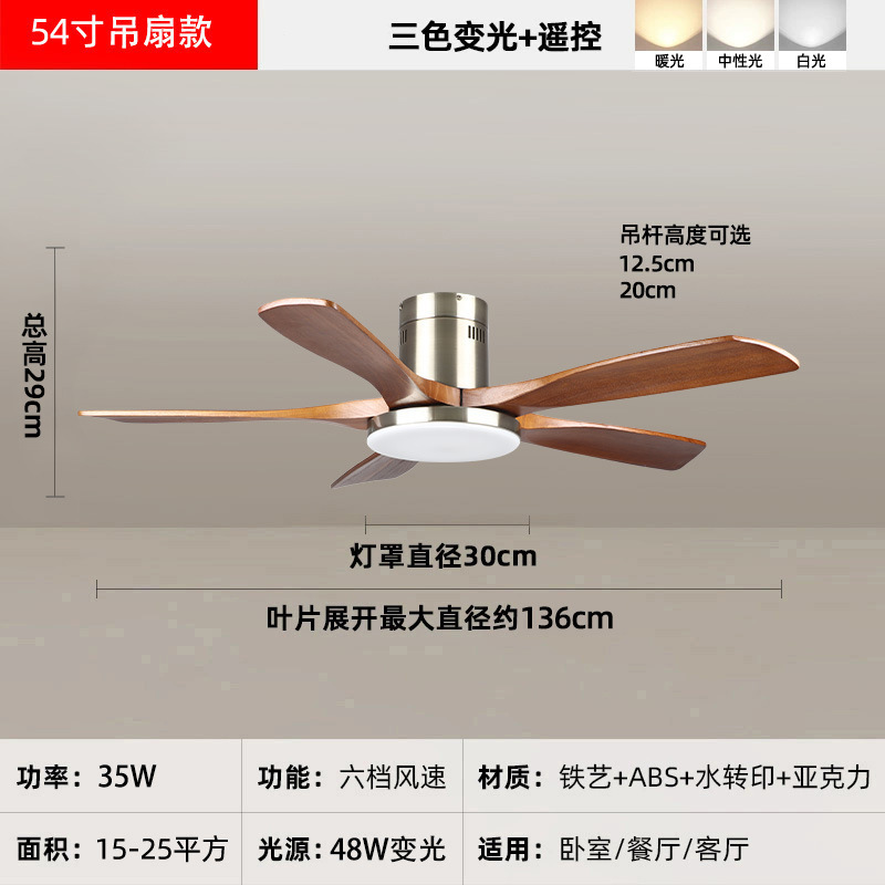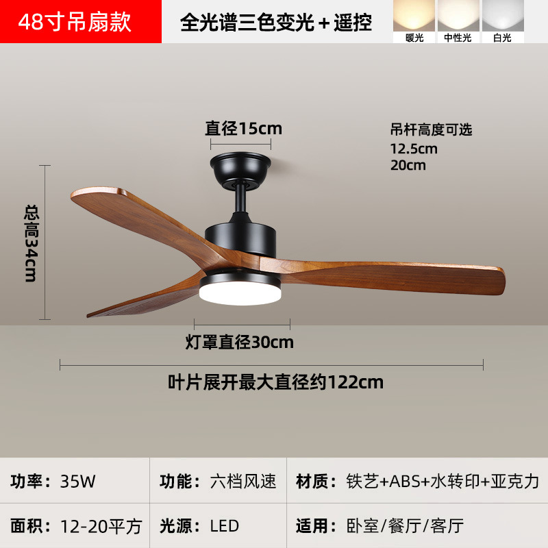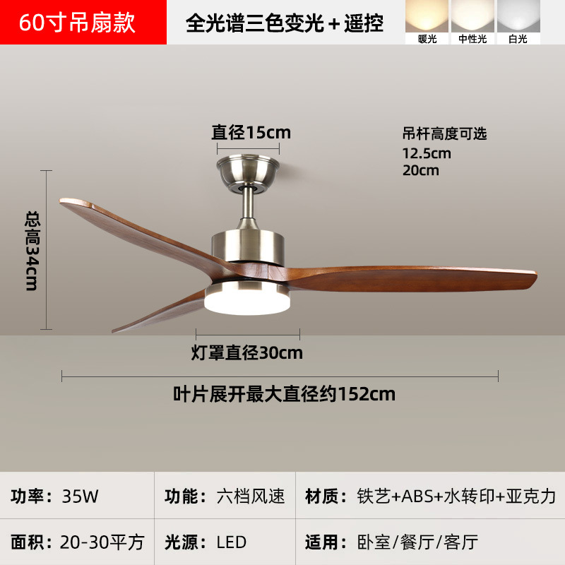 中古风复古餐厅扇灯客厅灯2026新款胡桃木色吸顶电扇灯静音卧室灯