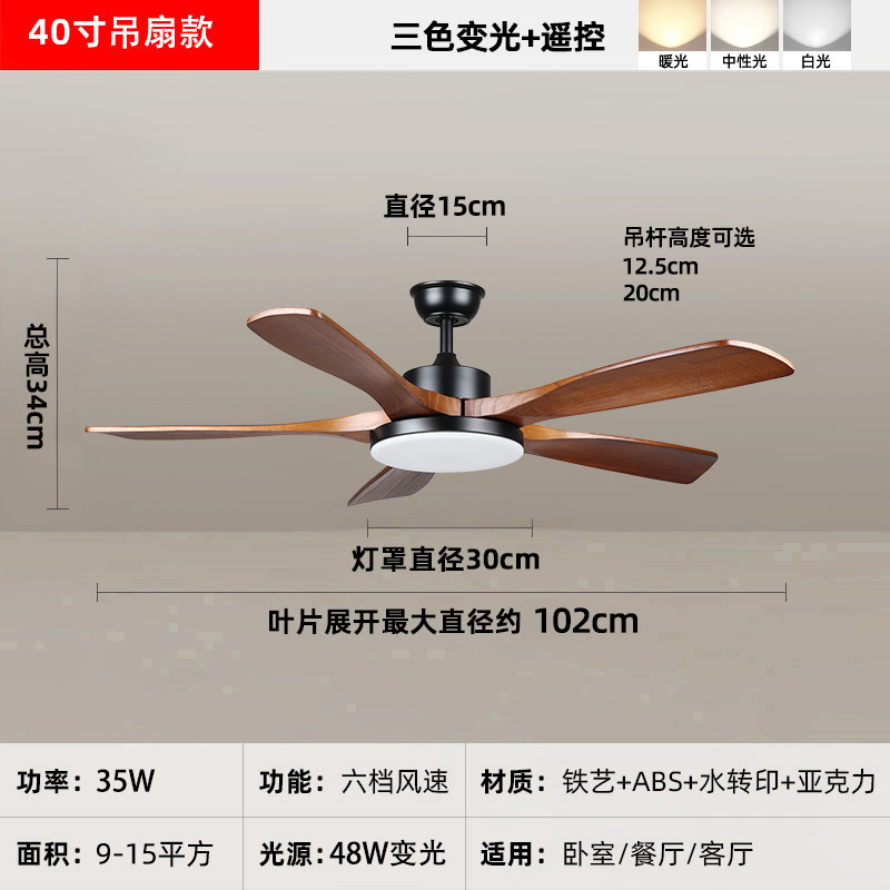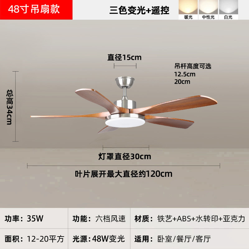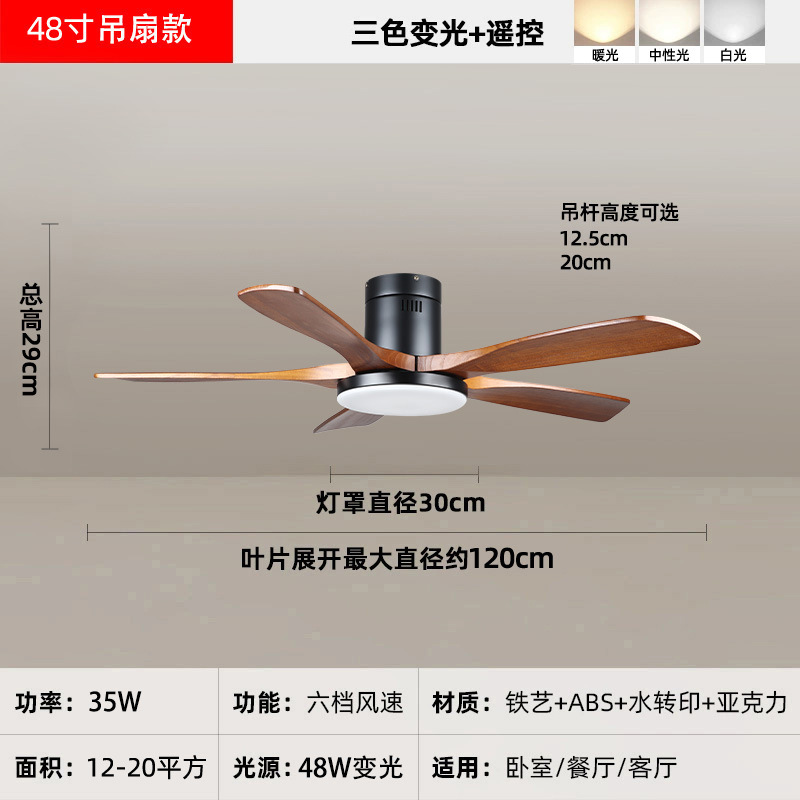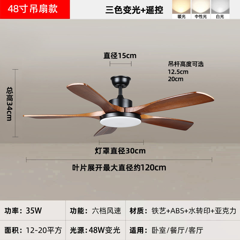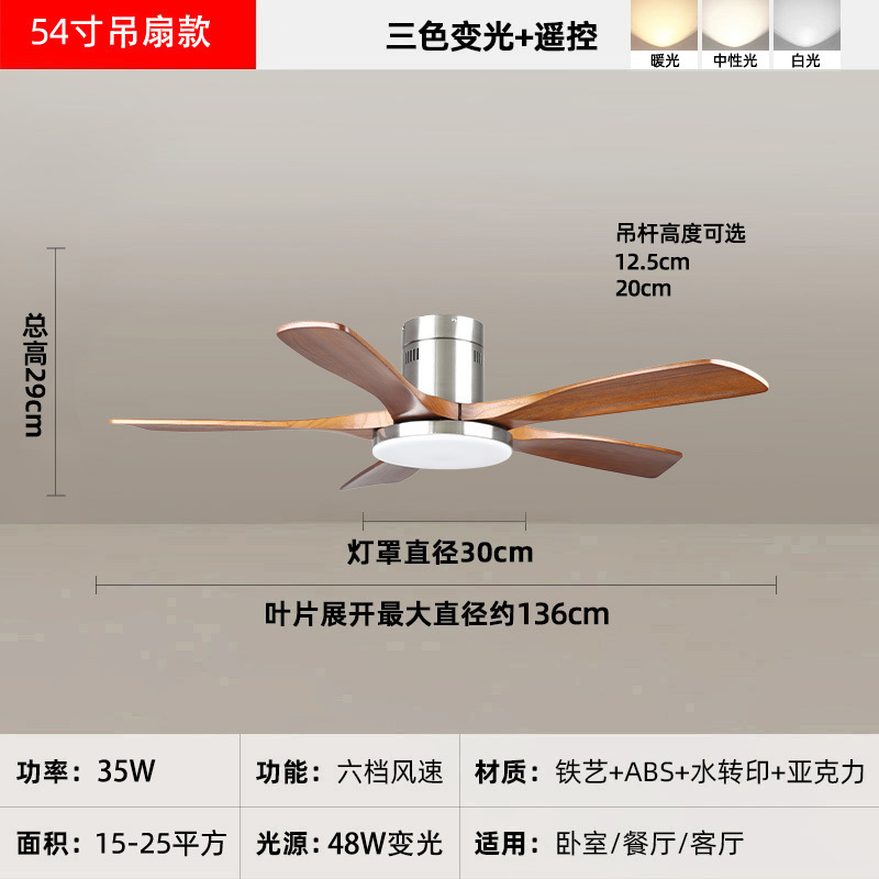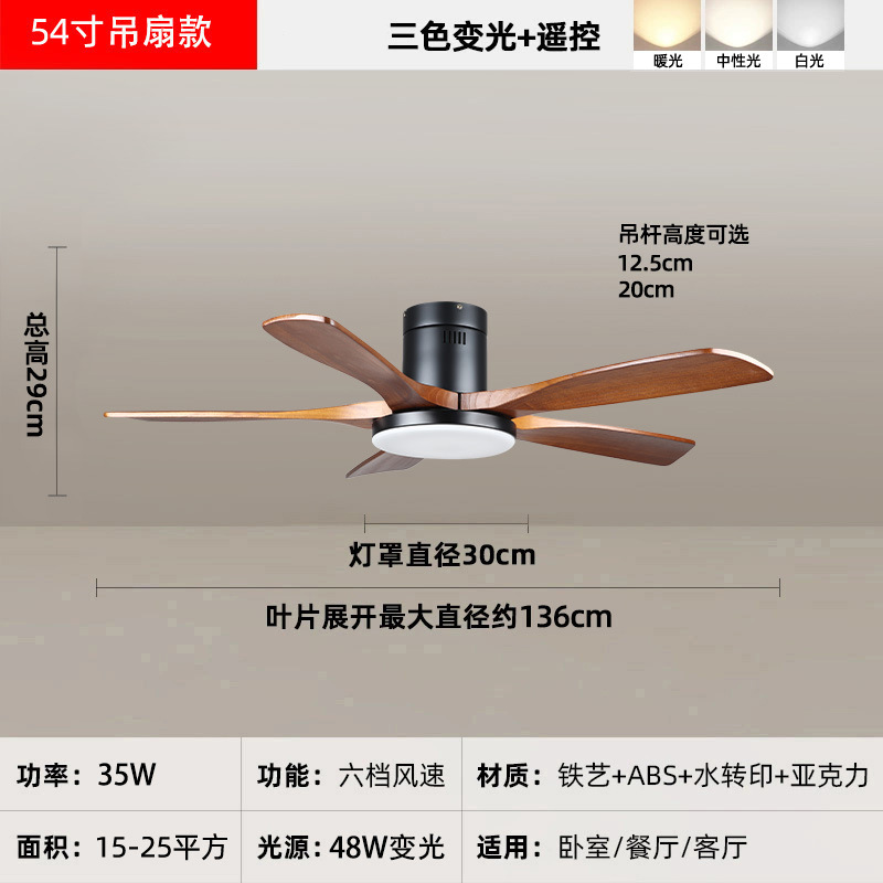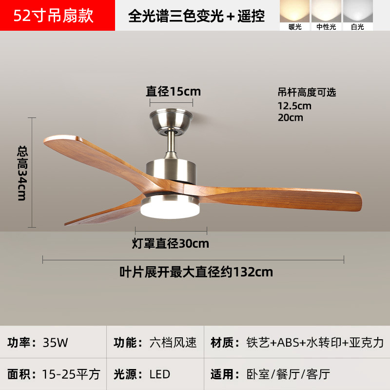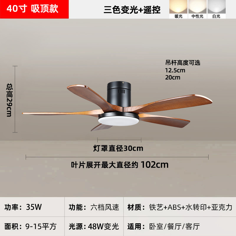 中古风复古餐厅扇灯客厅灯2026新款胡桃木色吸顶电扇灯静音卧室灯