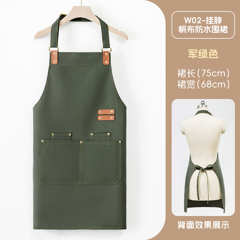 W02帆布防水围裙 墨绿