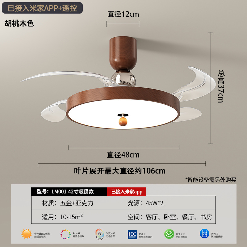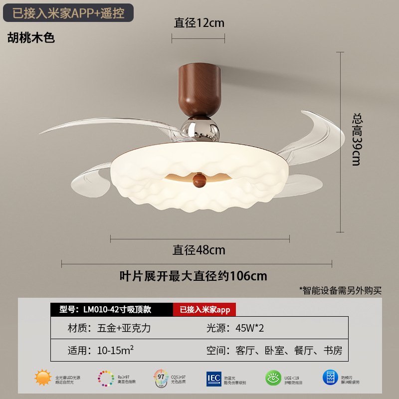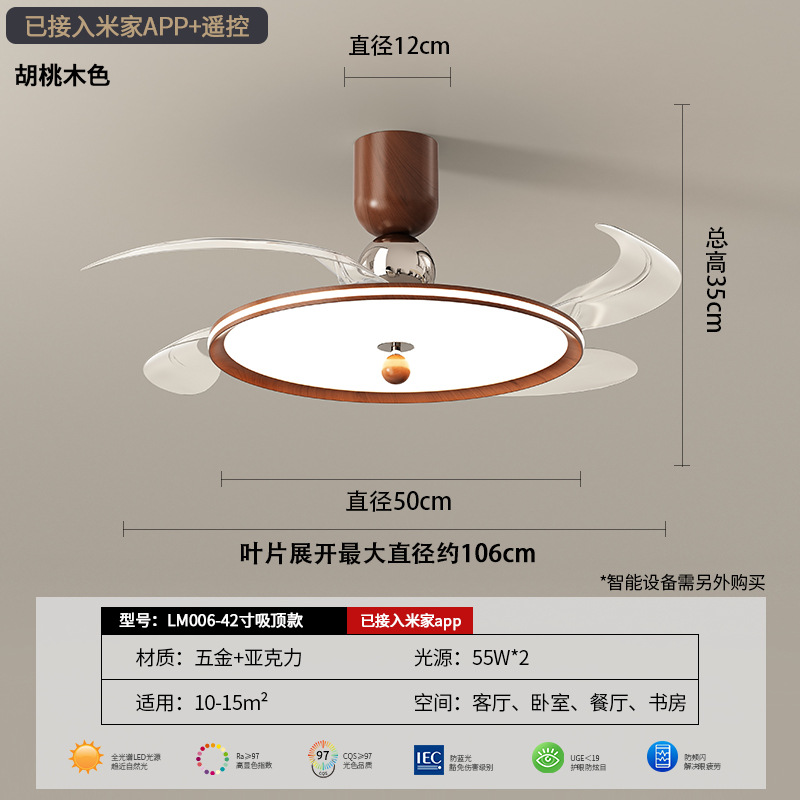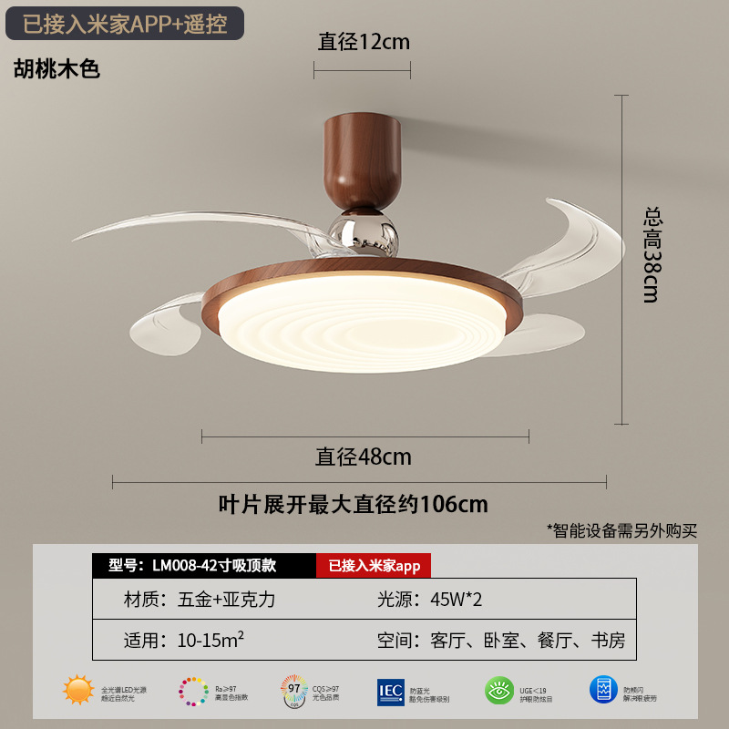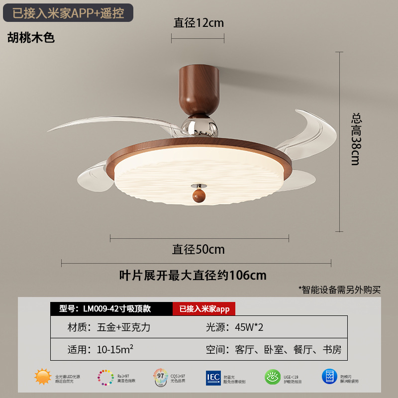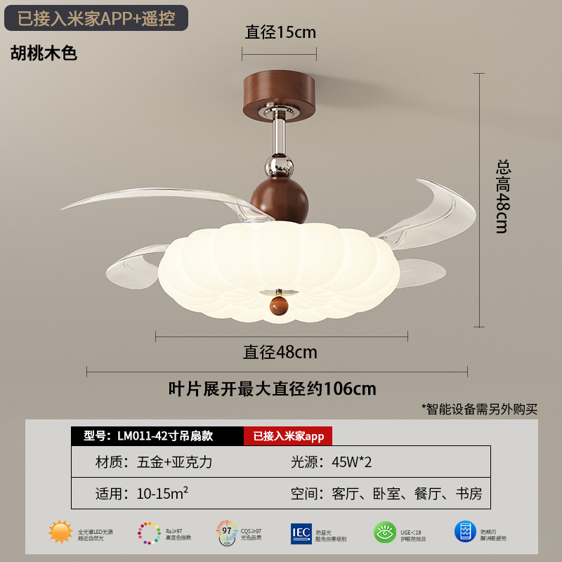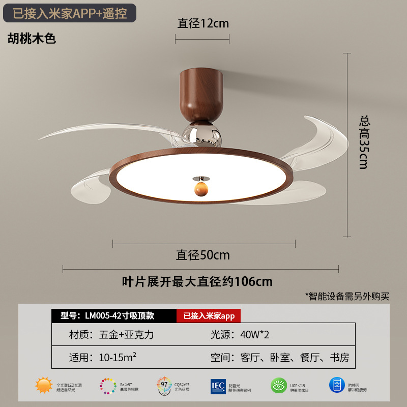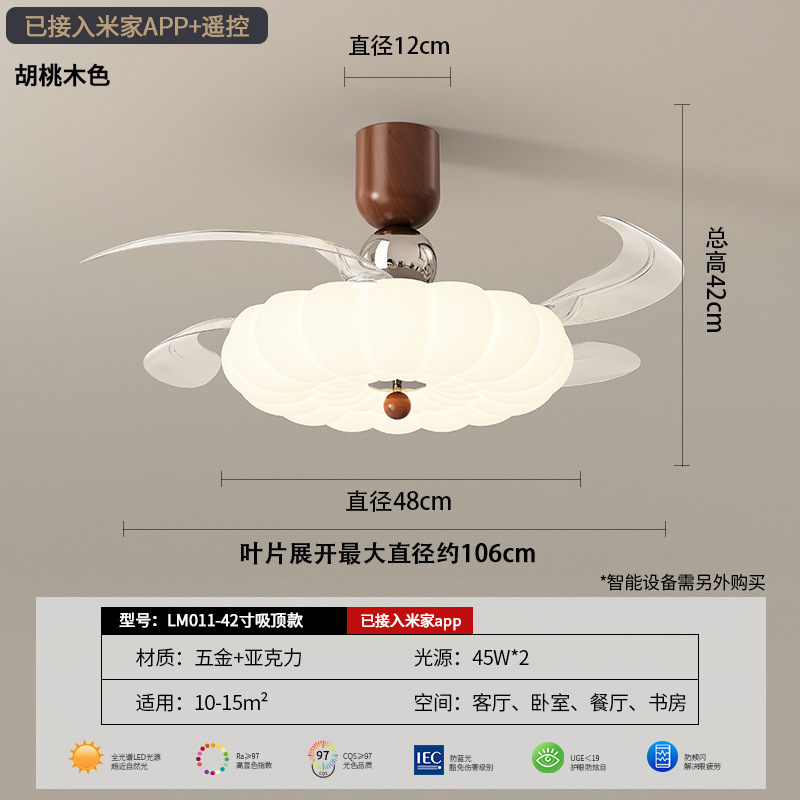 RA97全光谱隐形风扇灯智能胡桃木色中古奶油风适用于智能设备