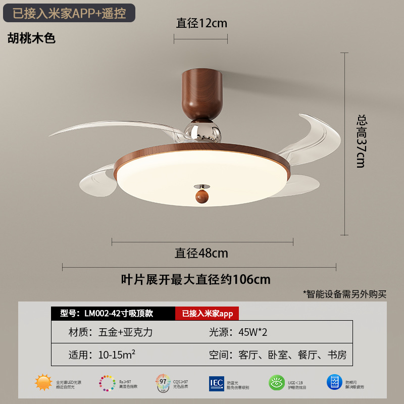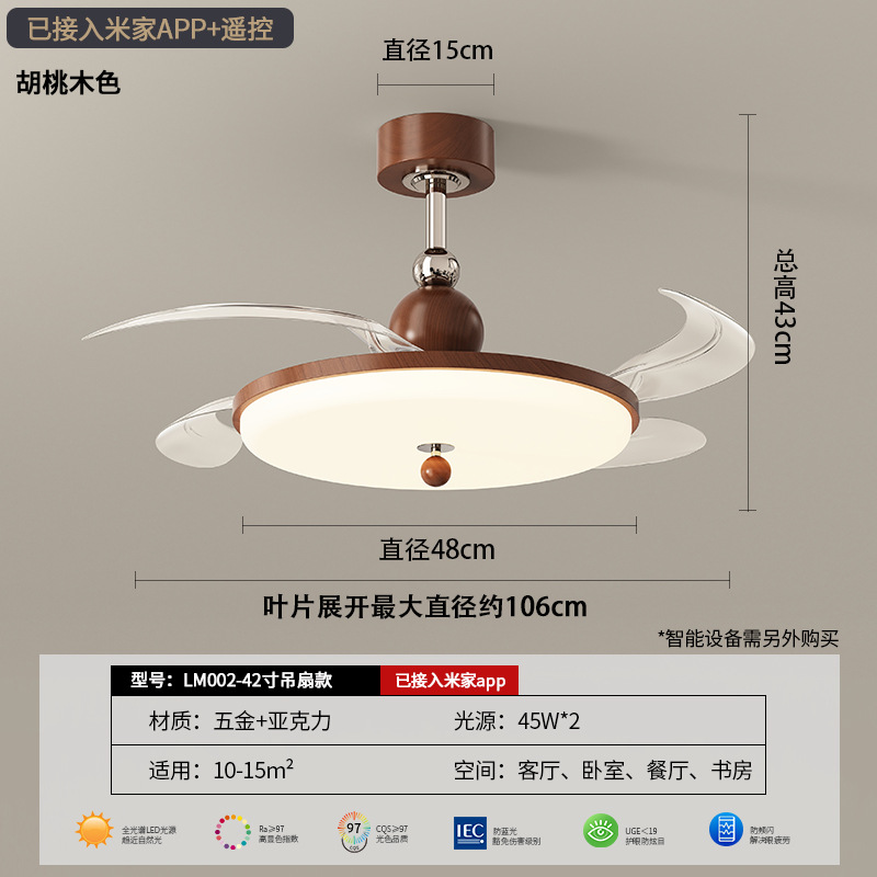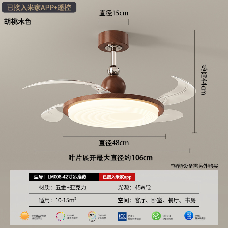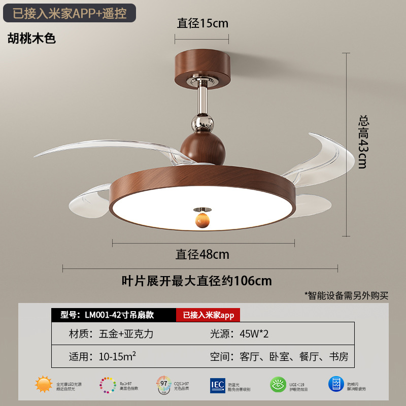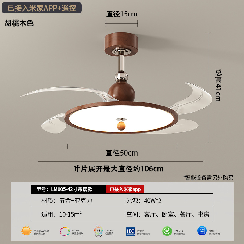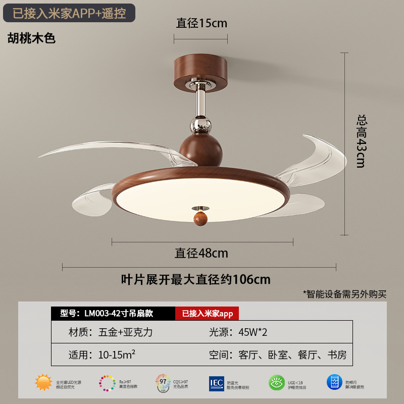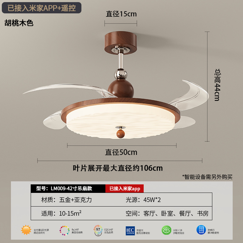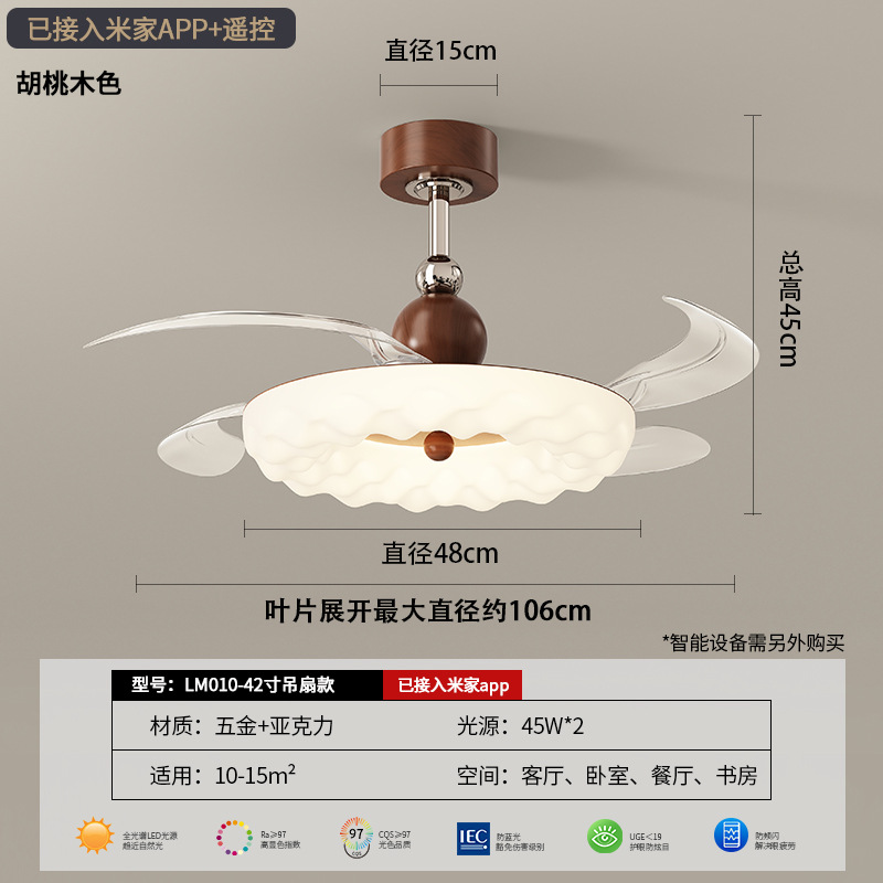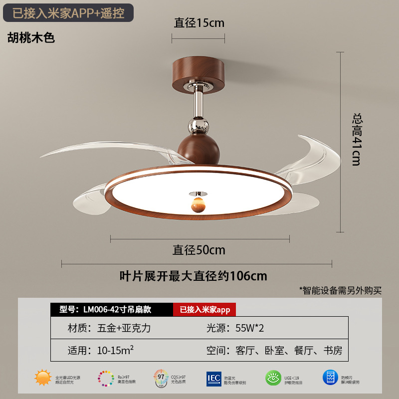 RA97全光谱隐形风扇灯智能胡桃木色中古奶油风适用于智能设备