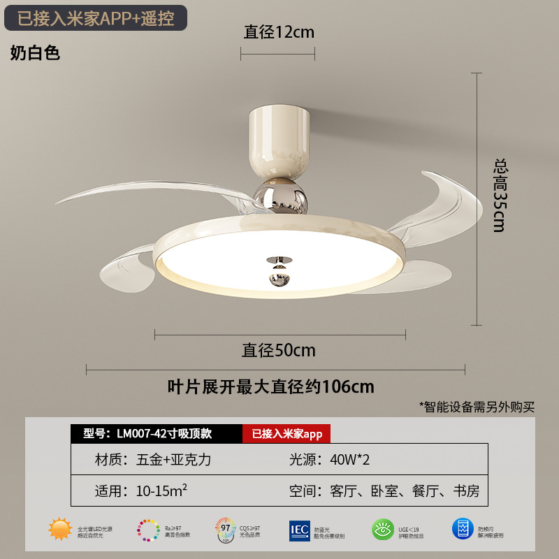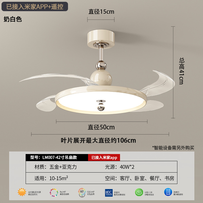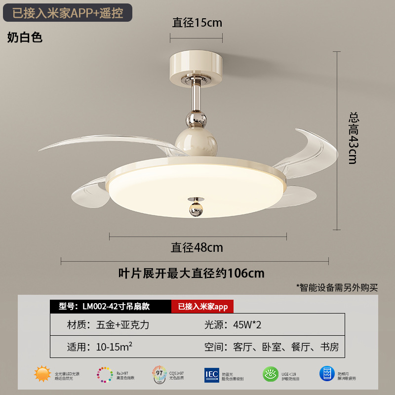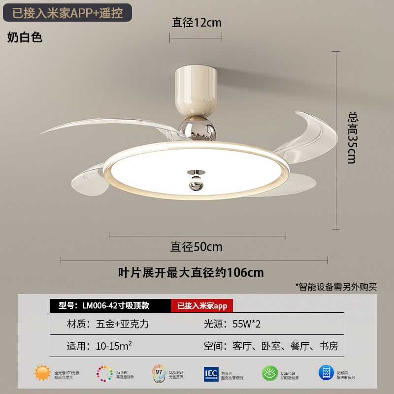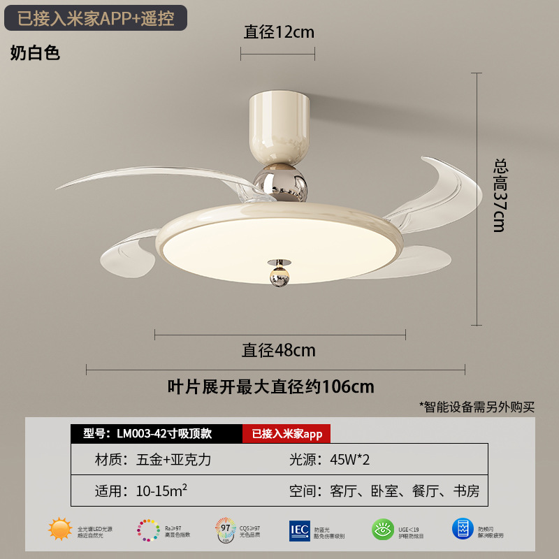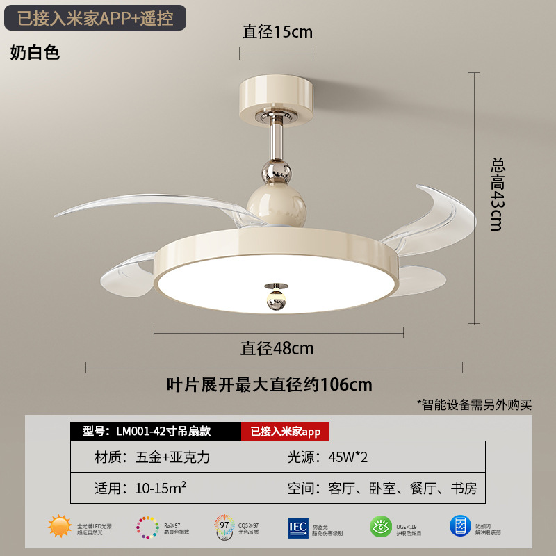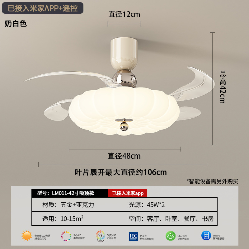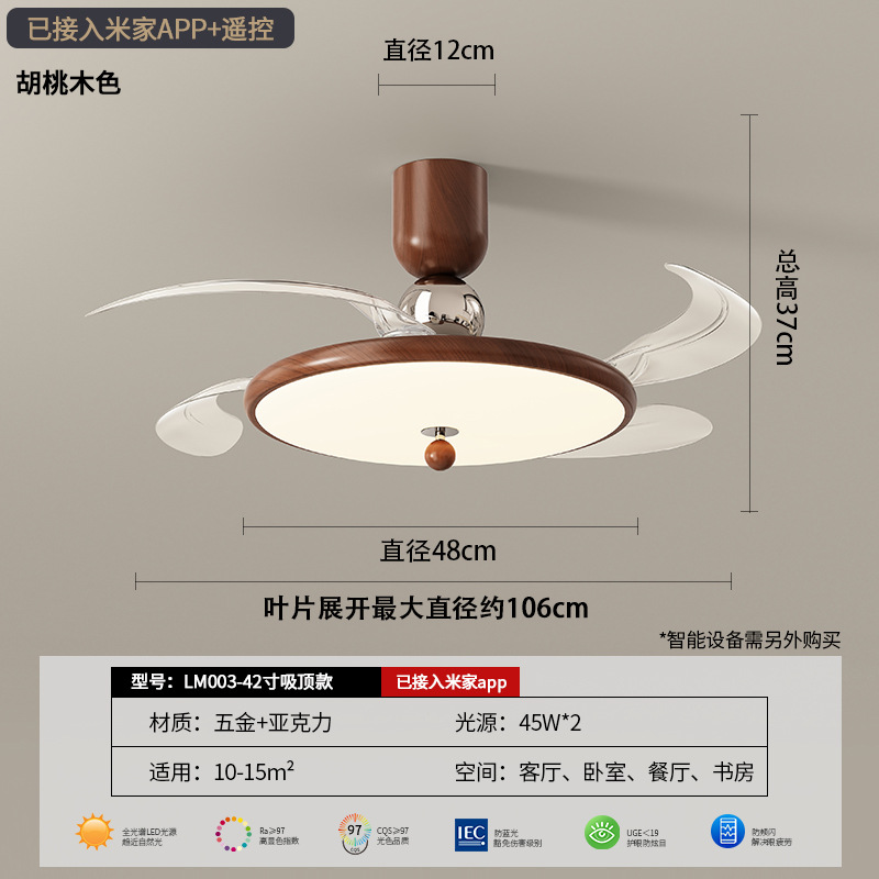 RA97全光谱隐形风扇灯智能胡桃木色中古奶油风适用于智能设备