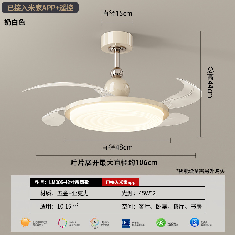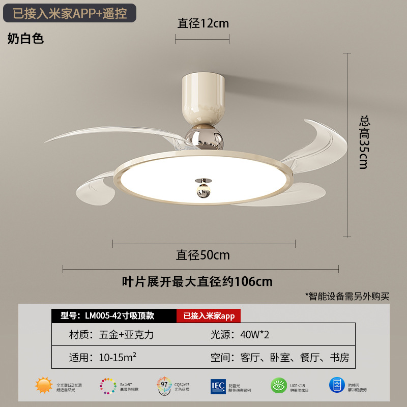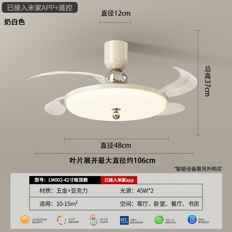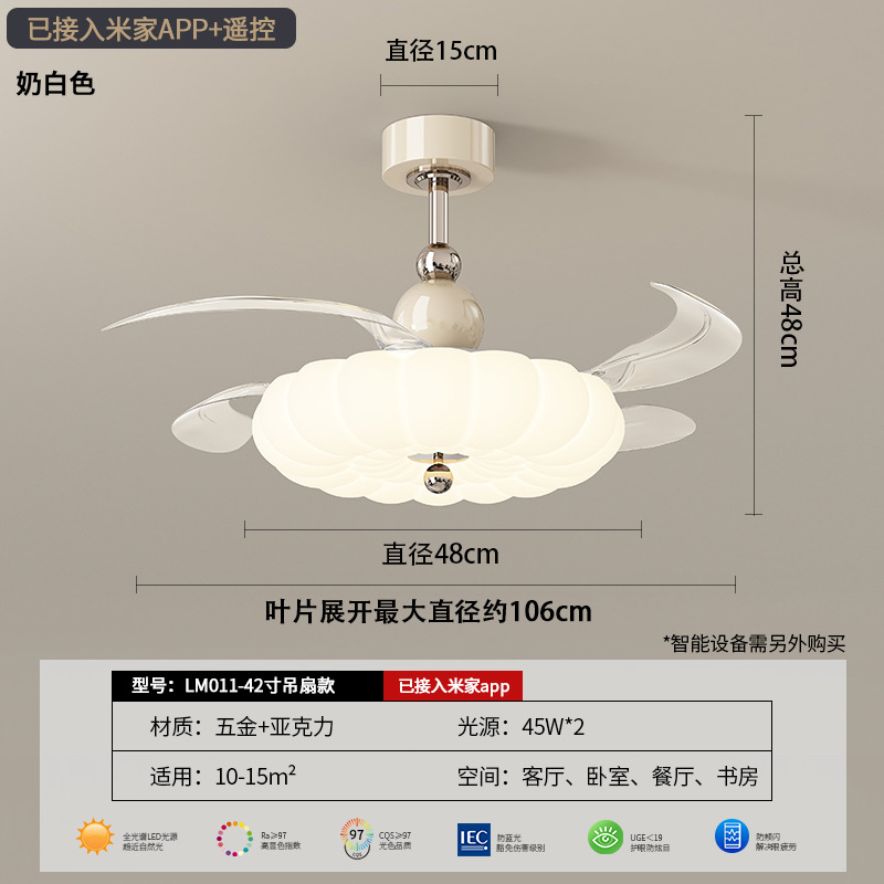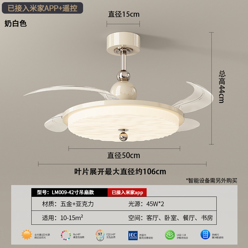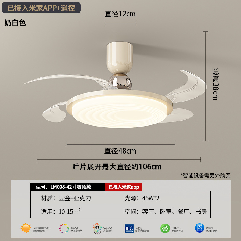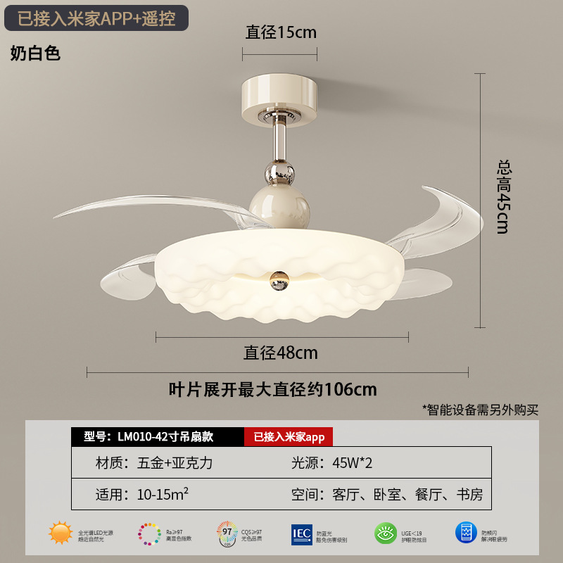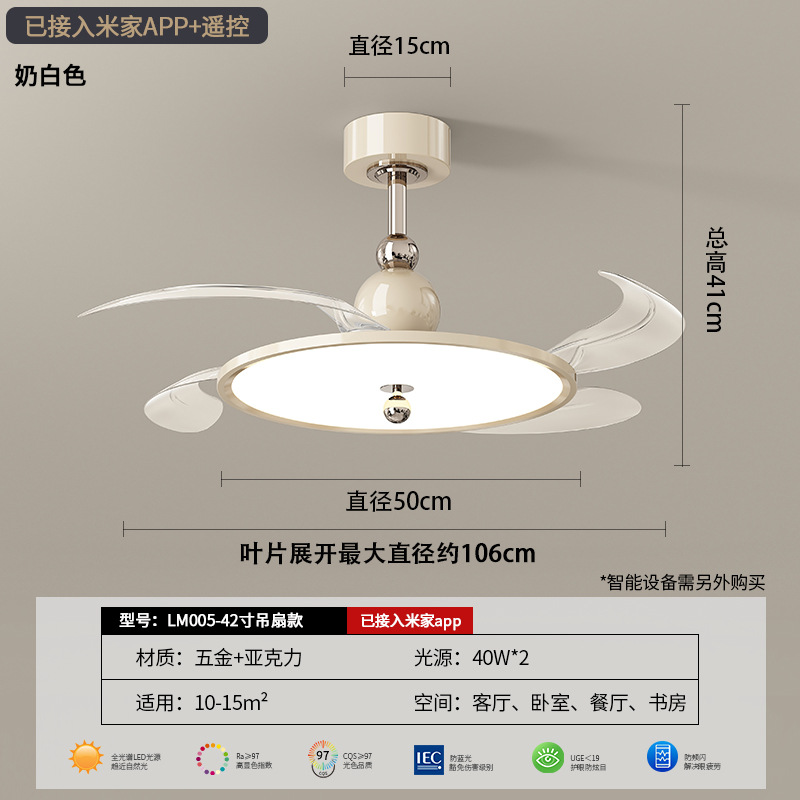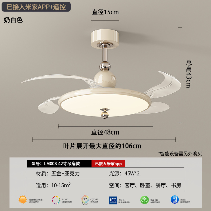 RA97全光谱隐形风扇灯智能胡桃木色中古奶油风适用于智能设备