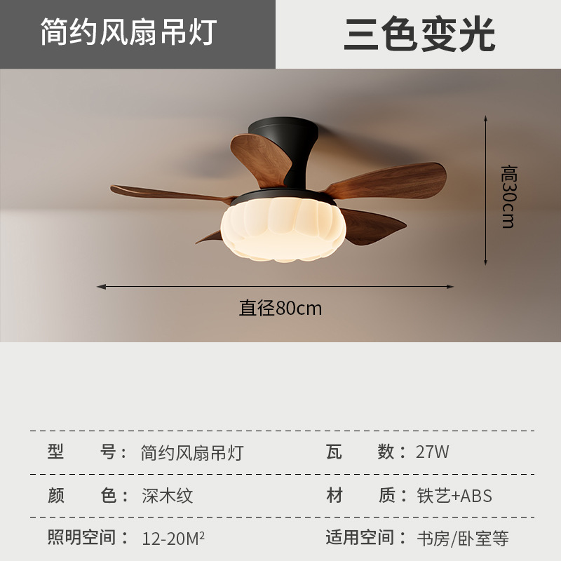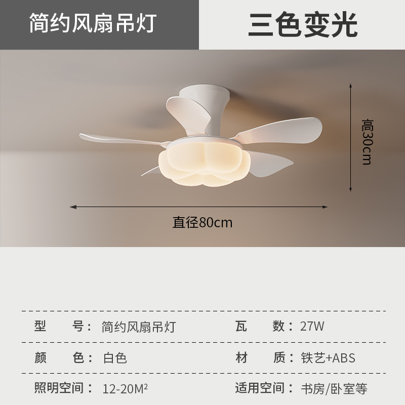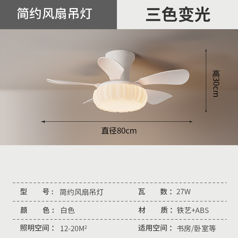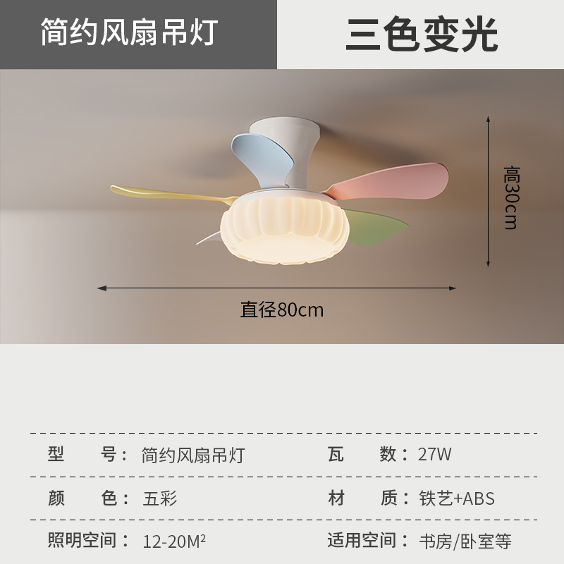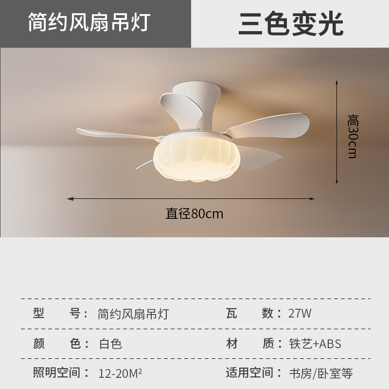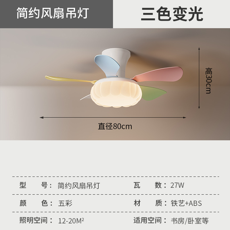 护眼全光谱儿童房简约风扇灯中古风卧室奶油风温馨吸顶灯吊扇灯
