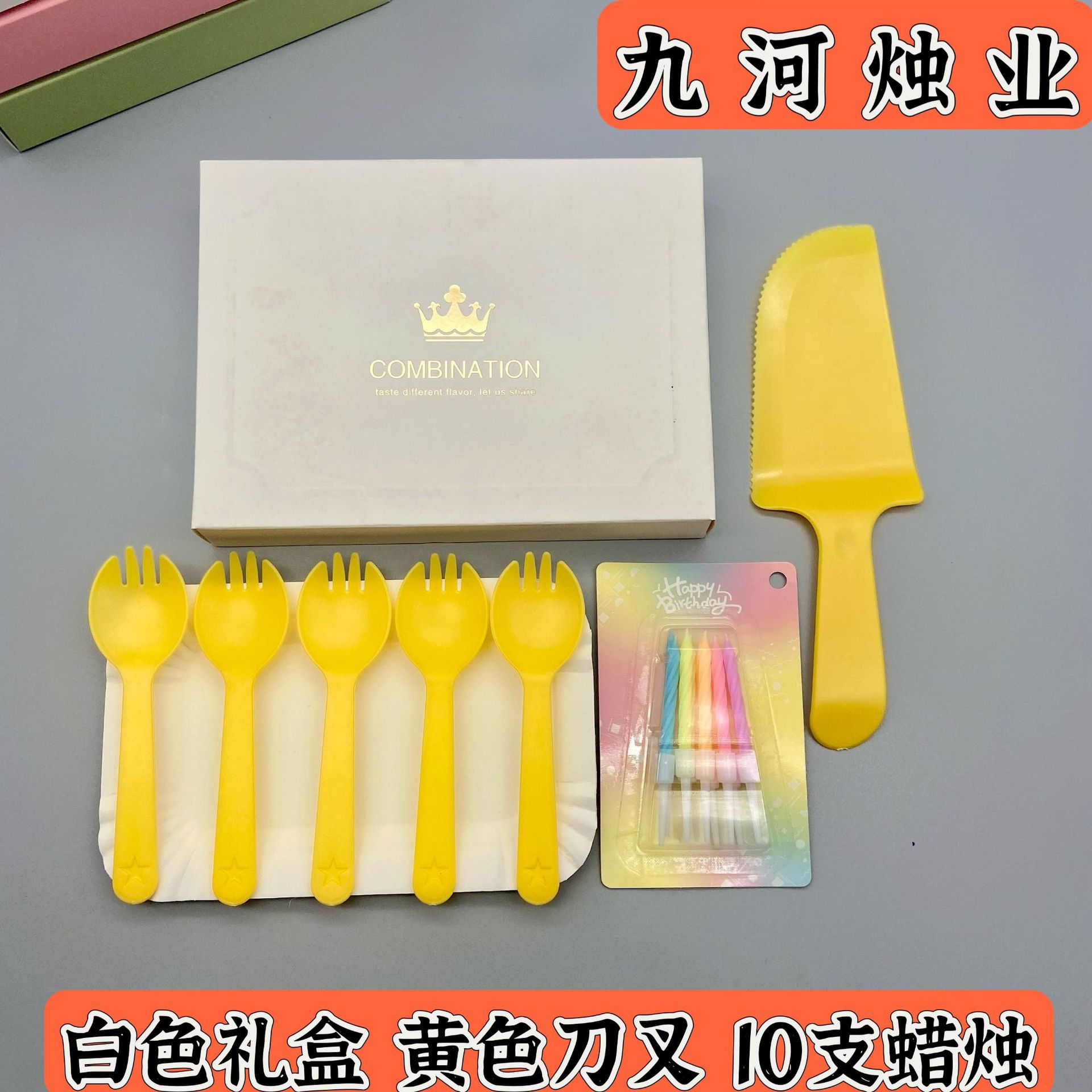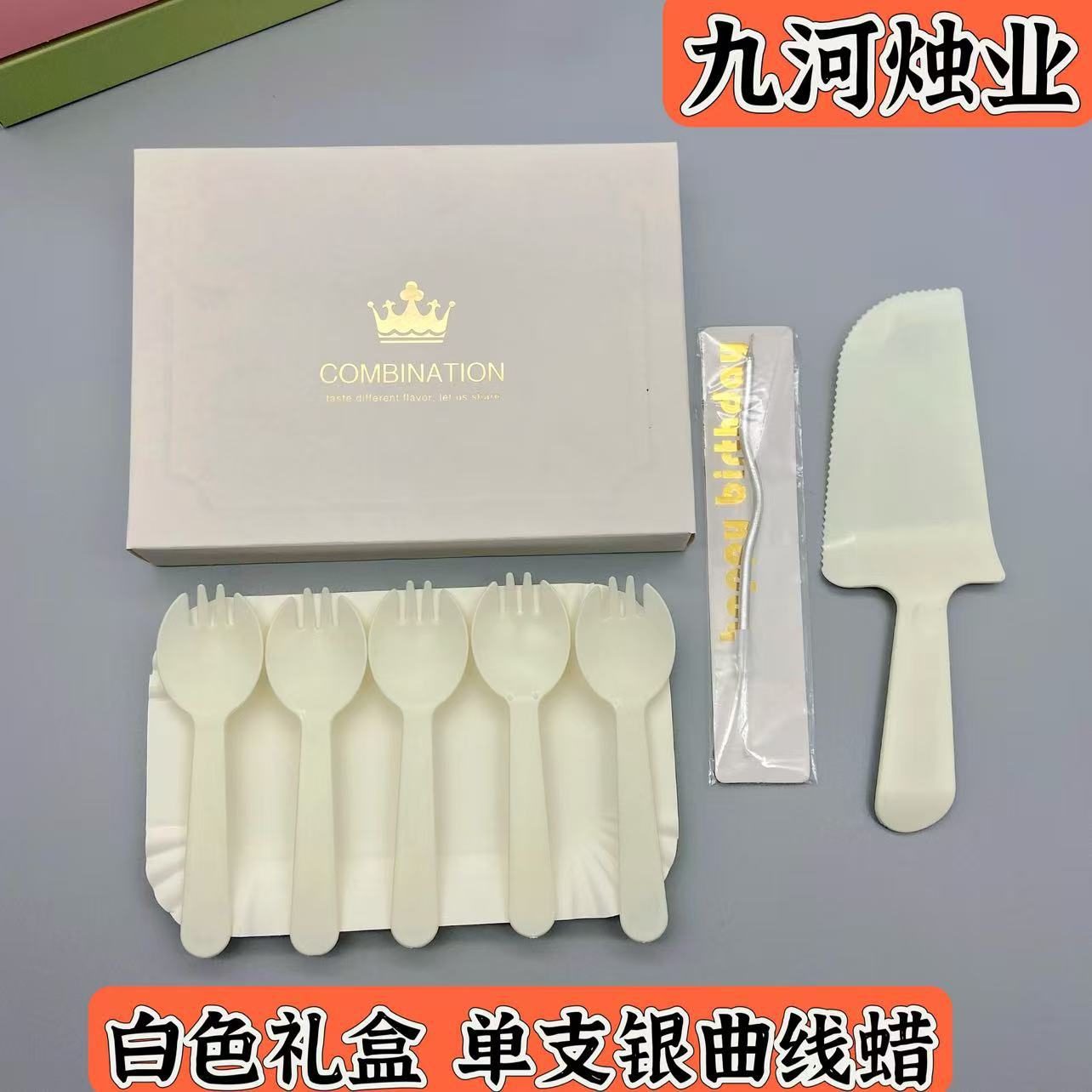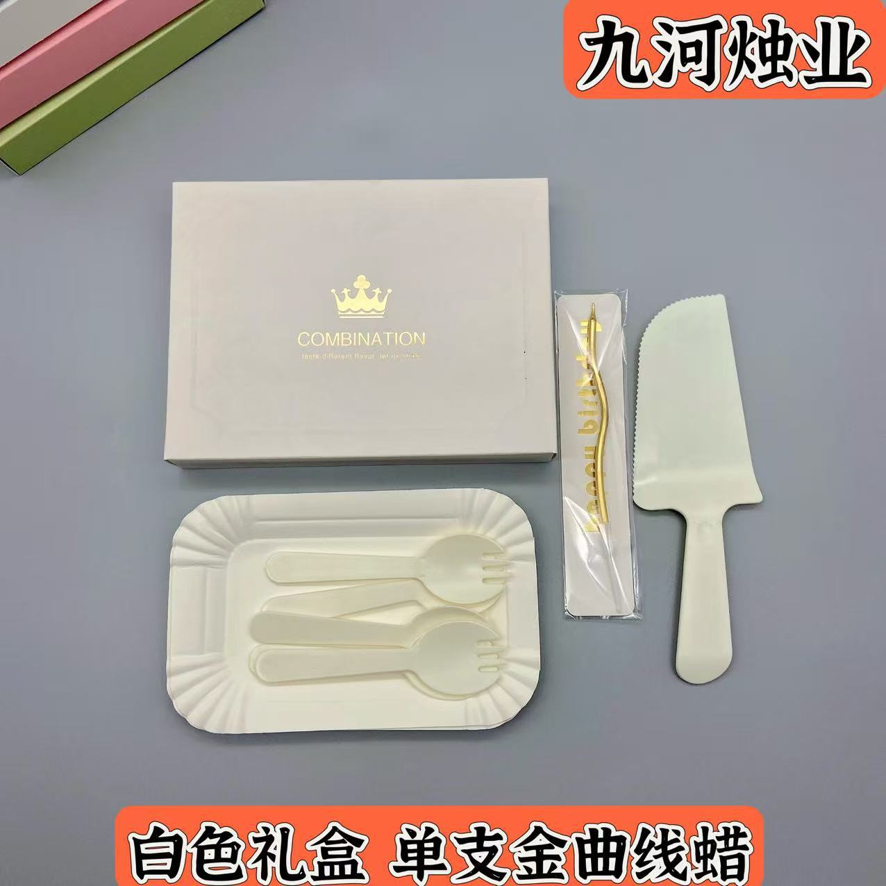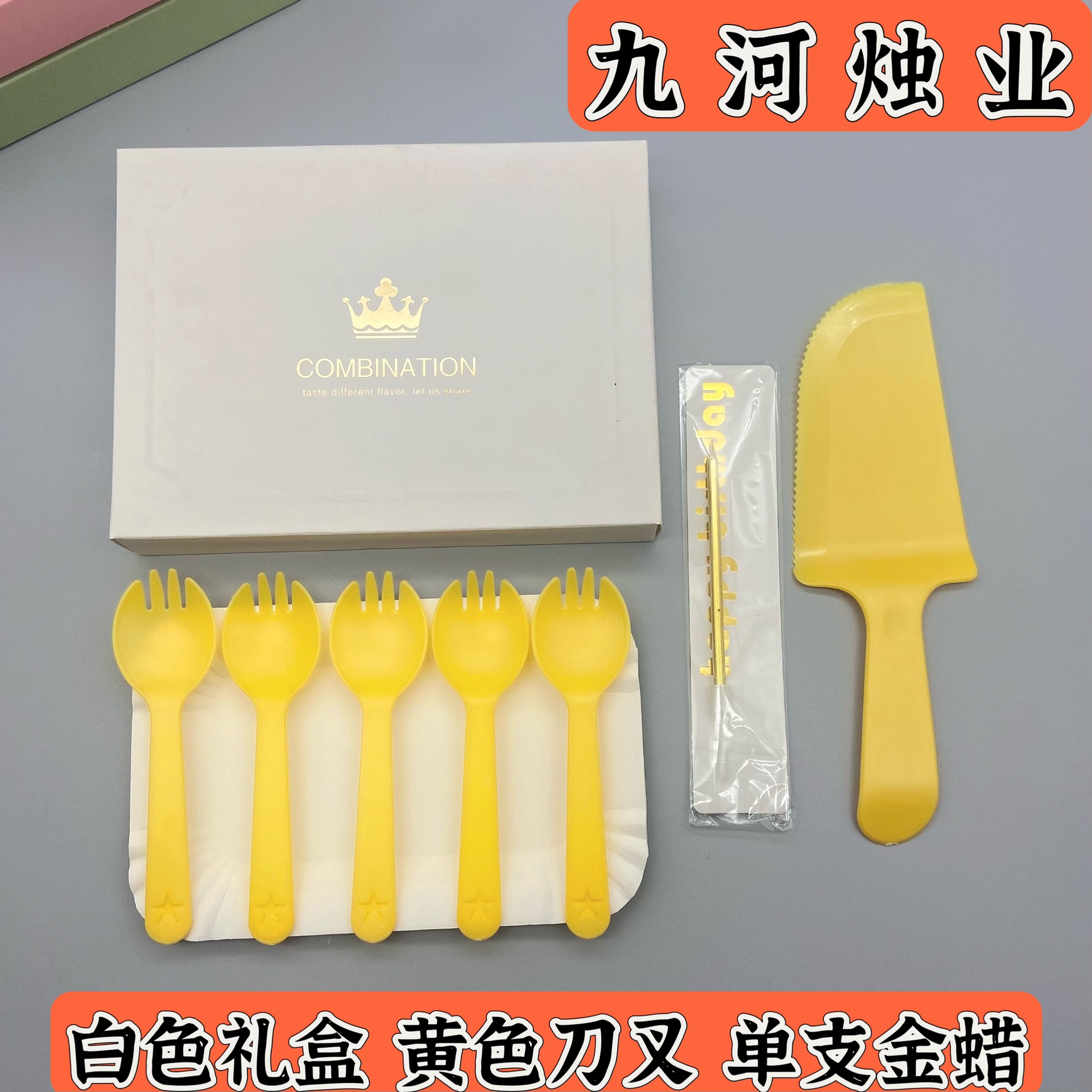 白色礼盒黄色刀叉单支金蜡