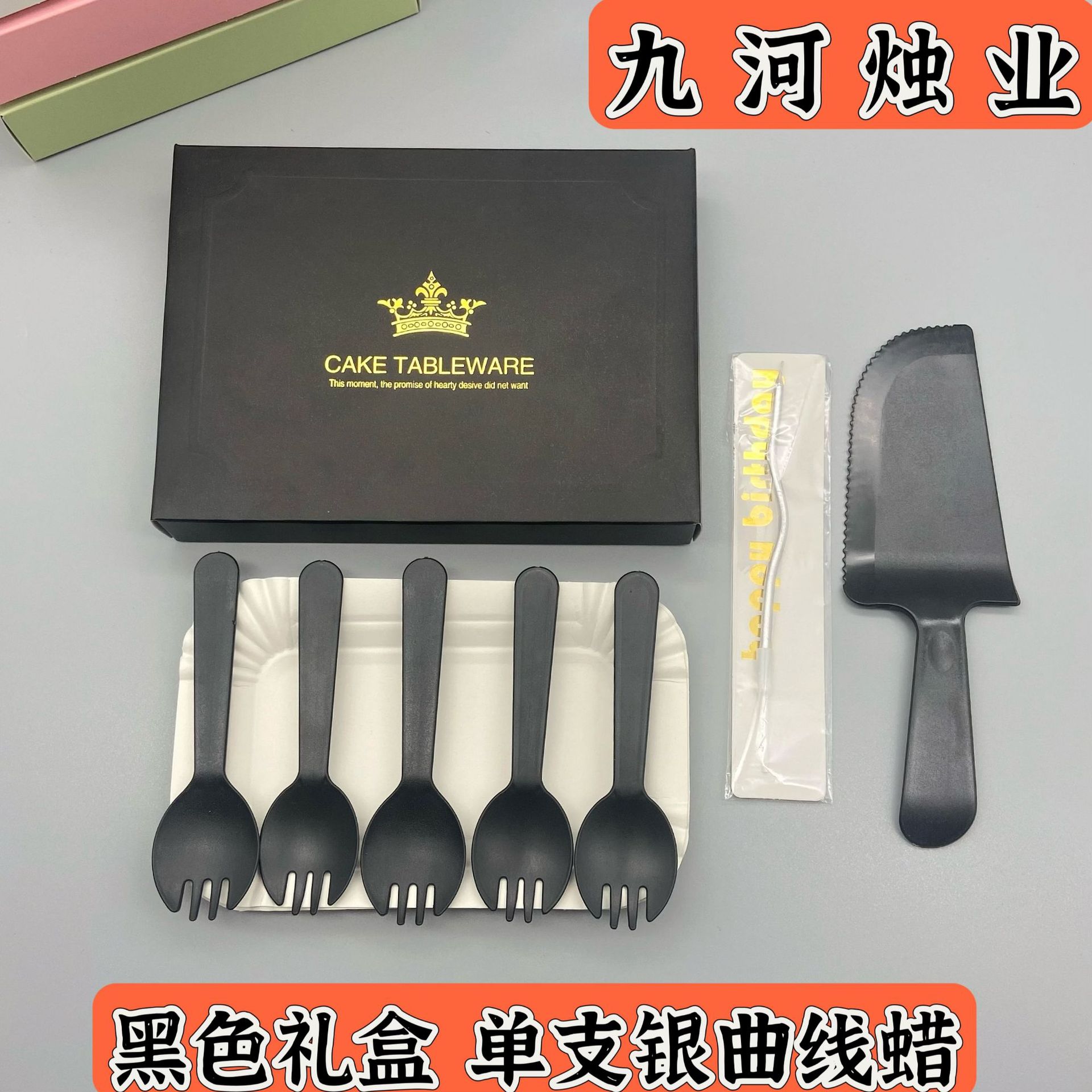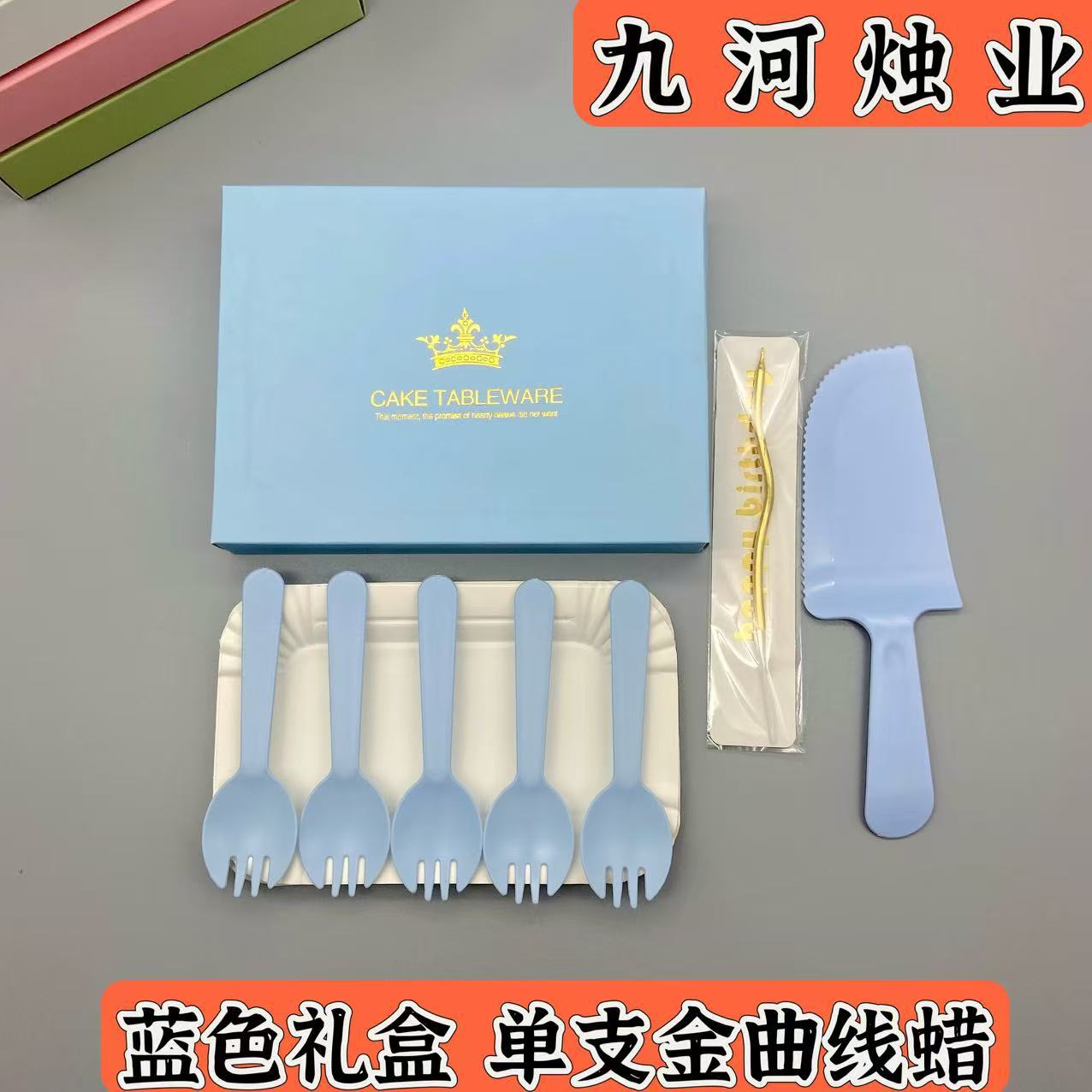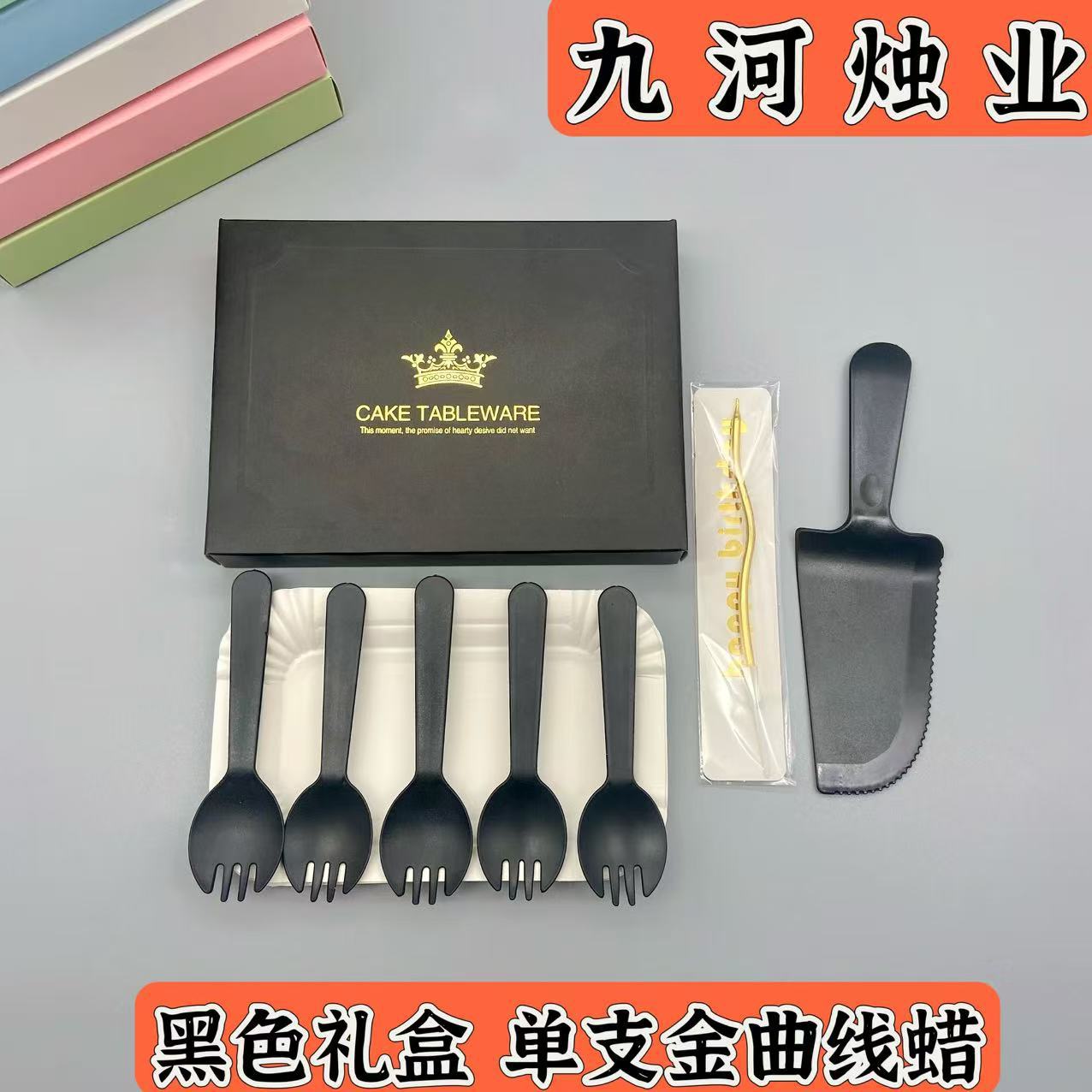 蛋糕餐盘食品级盒装方形生日刀叉套装一次性派对聚会烘焙蛋糕餐具