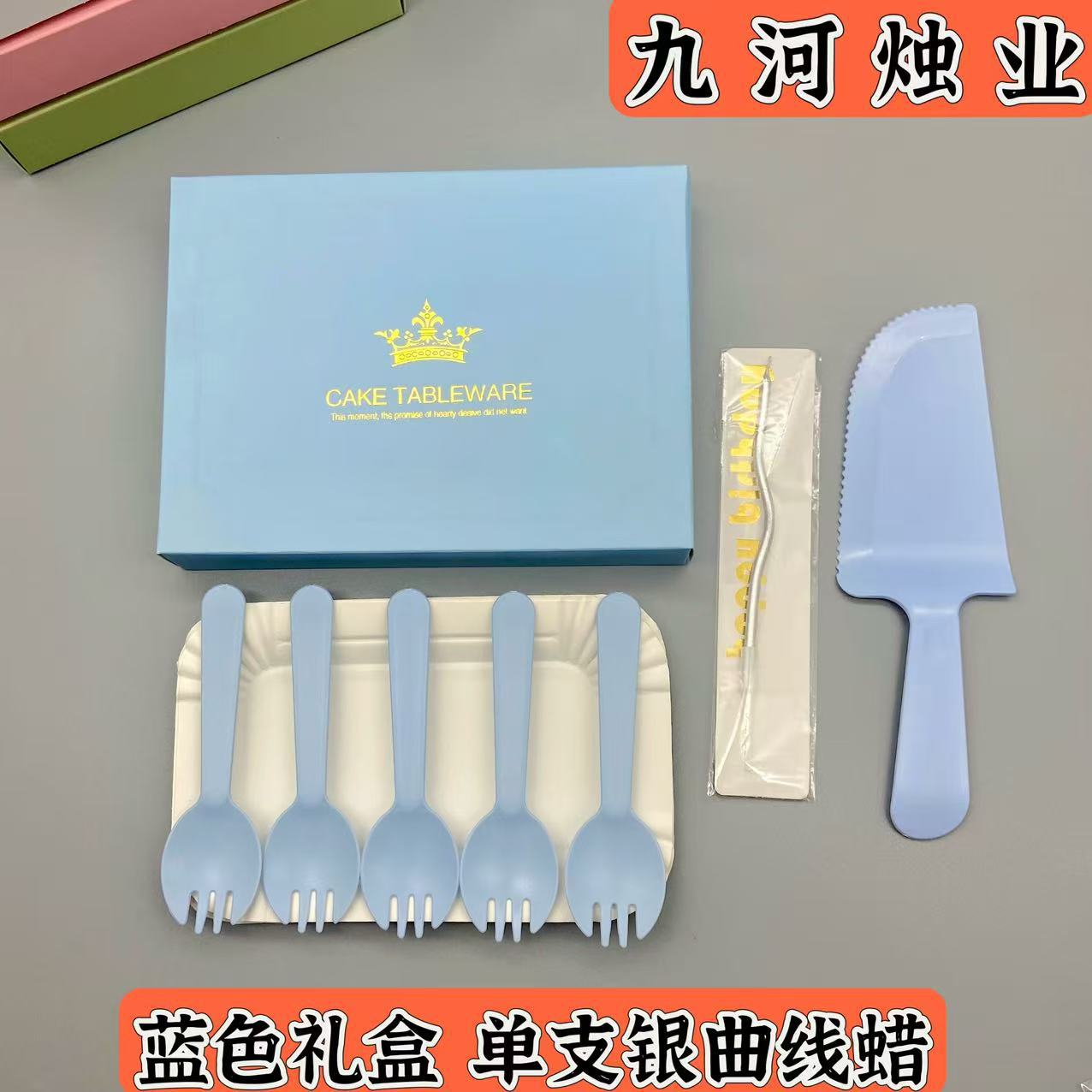 蓝色礼盒单支银曲线蜡
