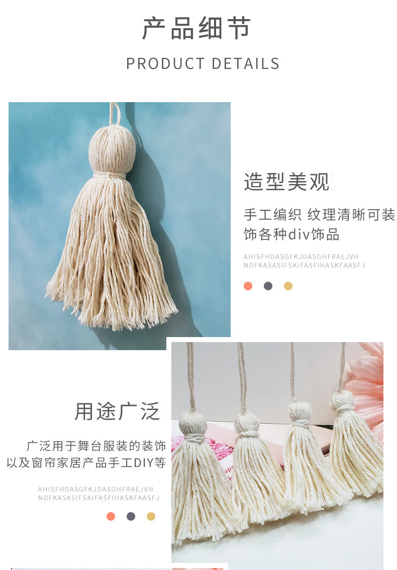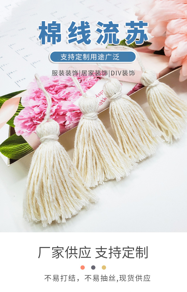 本白色简约棉线流苏 毛线DIY服饰配件穗子抱枕流苏供应