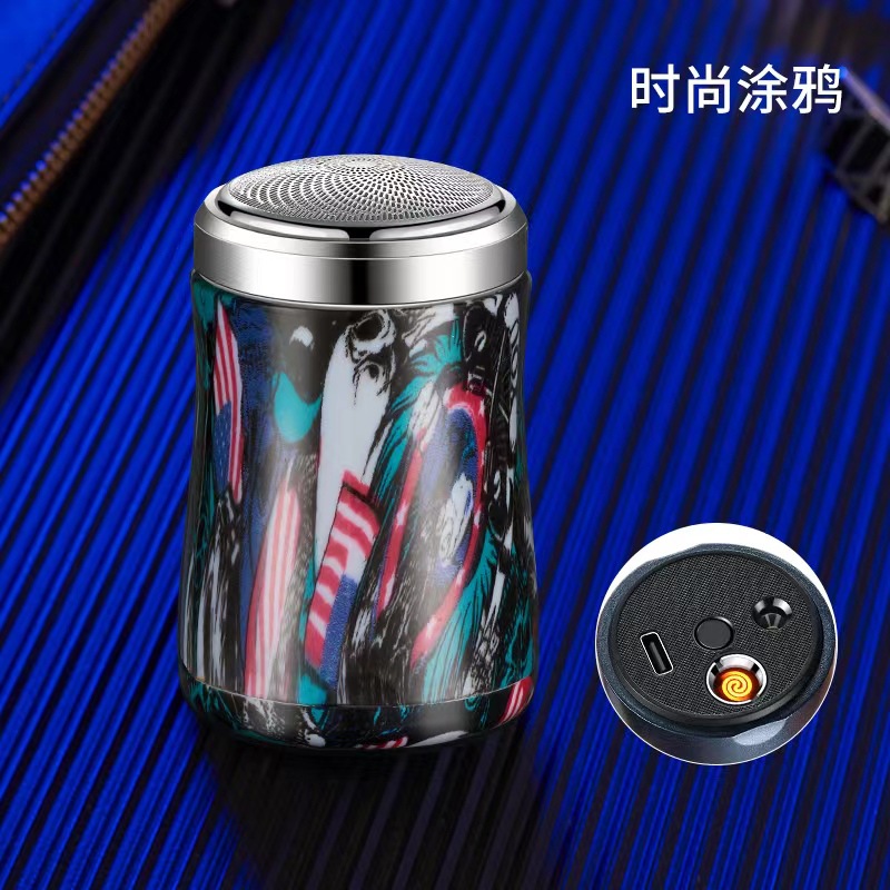 永一多功能迷你剃须刀充电防风打火机LED灯剃须三合一礼盒送男友