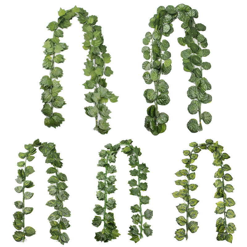 跨境亚马逊仿真叶子36片藤条装饰藤蔓植物假爬山虎常春藤厂家批发