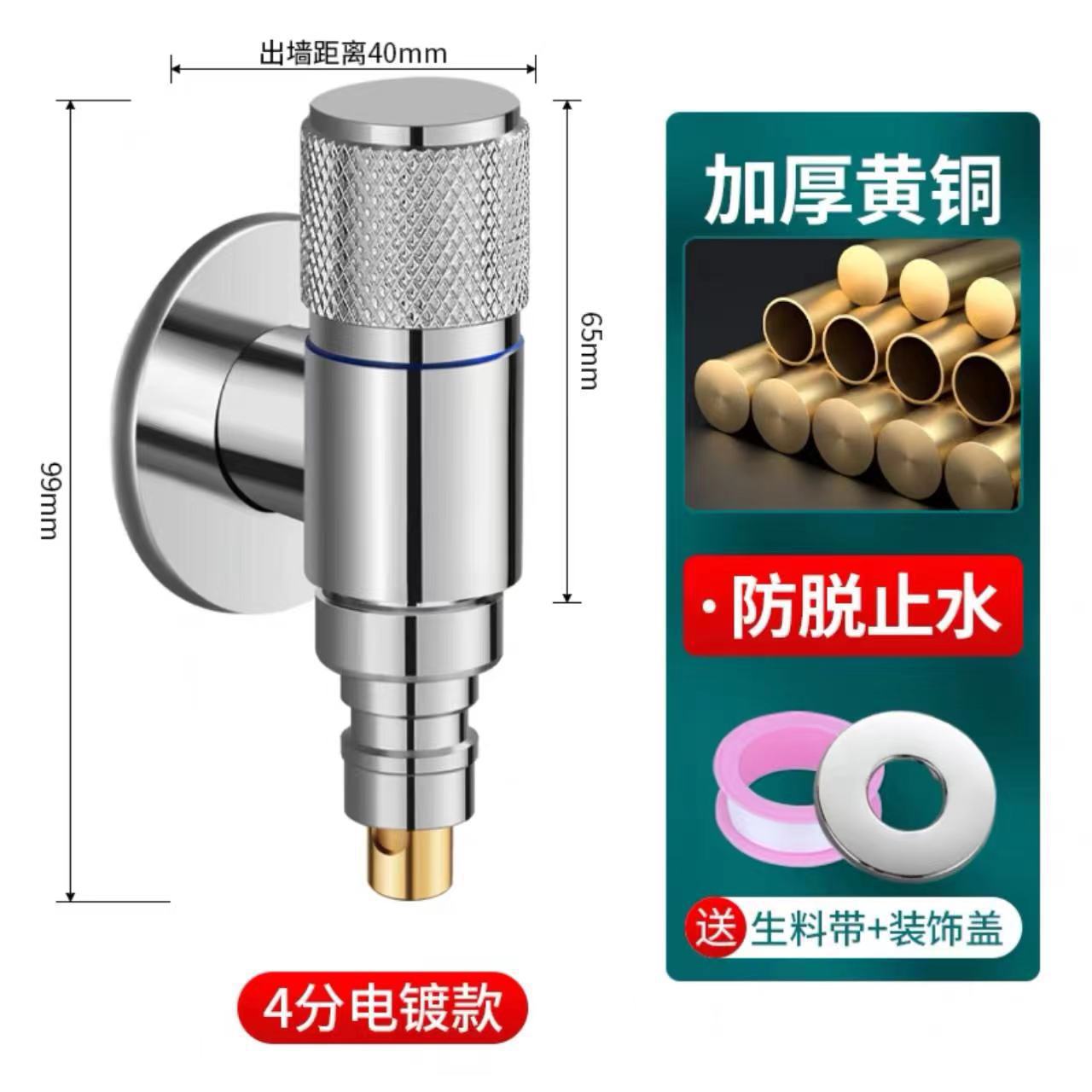 全铜洗衣机水龙头专用自动止水阀防脱落超短一进二出4分6通用接头
