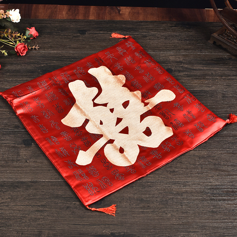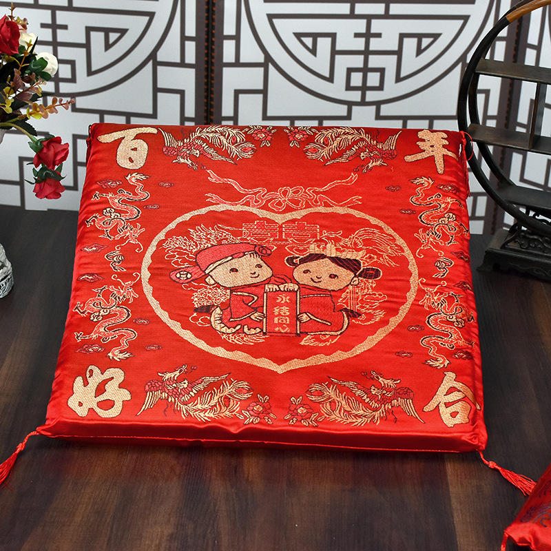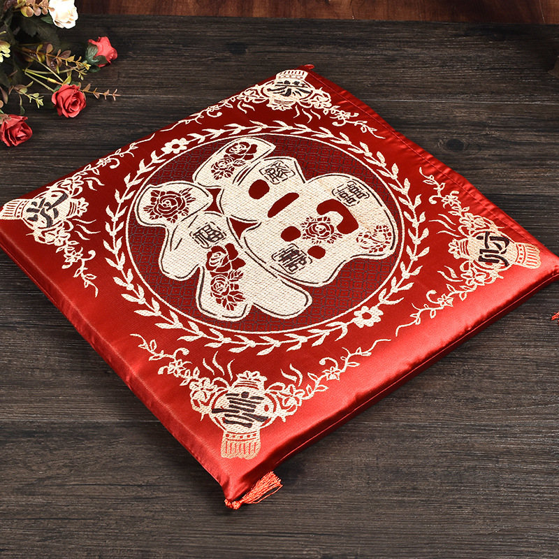 现货结婚跪垫婚庆新人拜堂喜福坐垫龙凤双喜婚礼沙发靠垫套芯