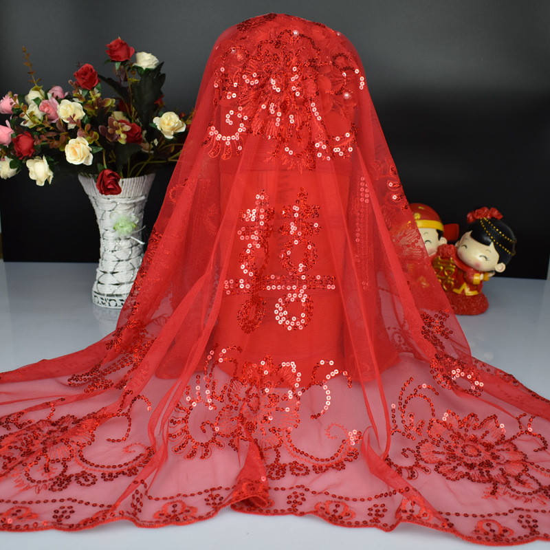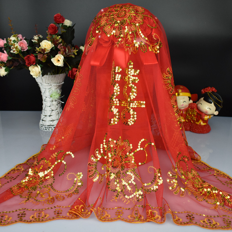 现货新娘大红盖头婚庆用品结婚头纱中式刺绣婚礼拜堂盖头厂家