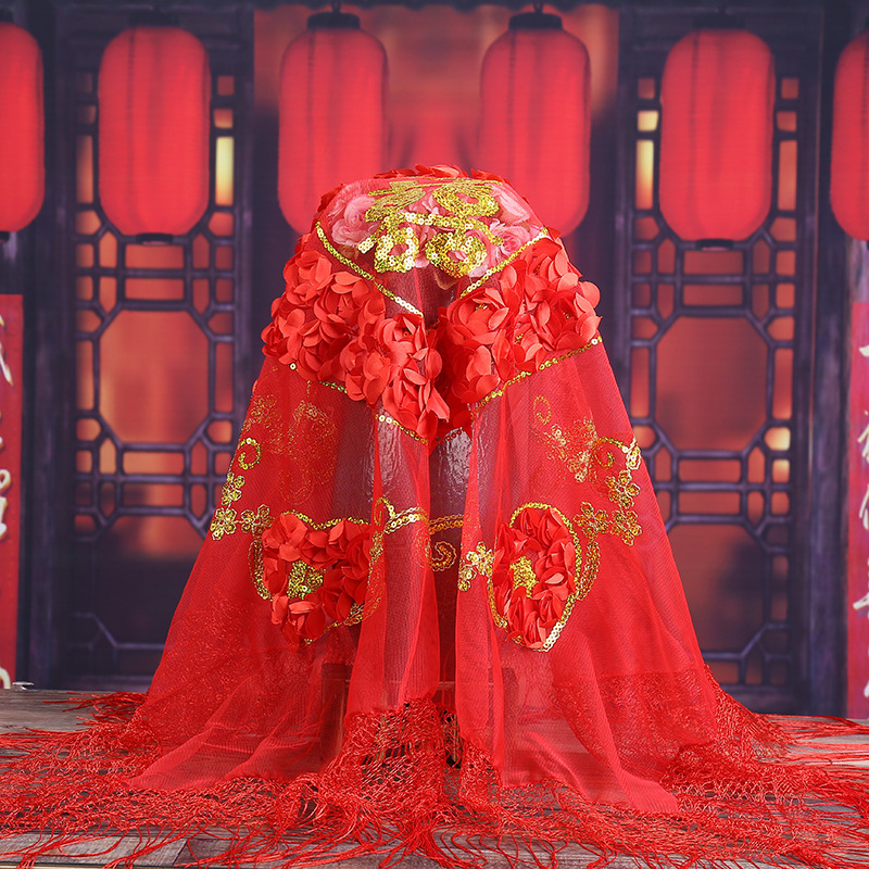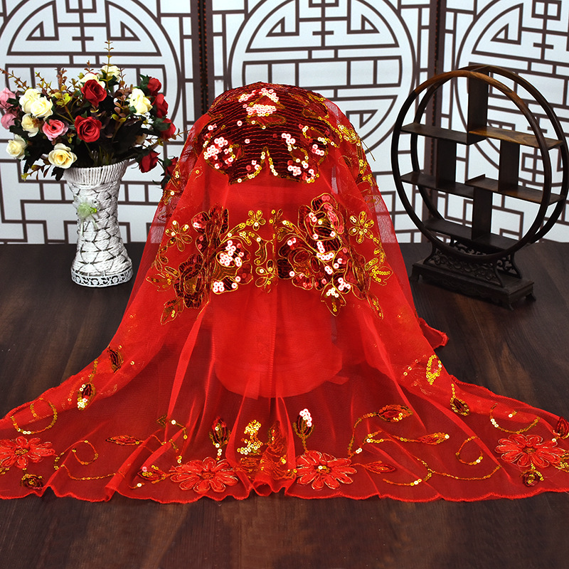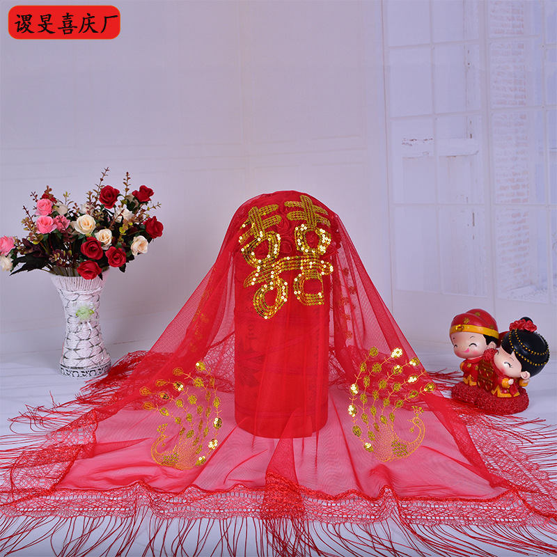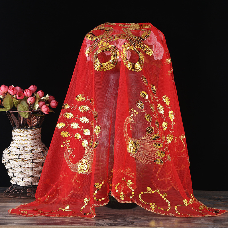 创意款新娘盖头中式亮片刺绣红盖头婚庆用品布料拜堂结婚盖头新款