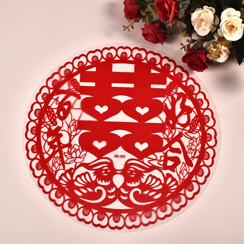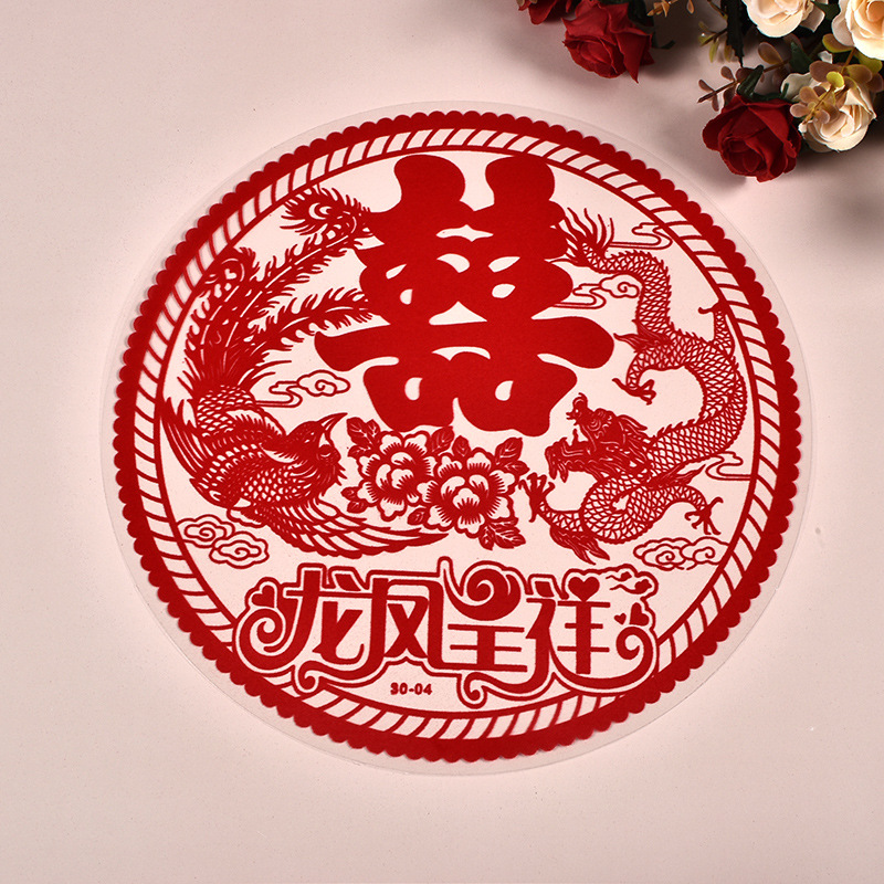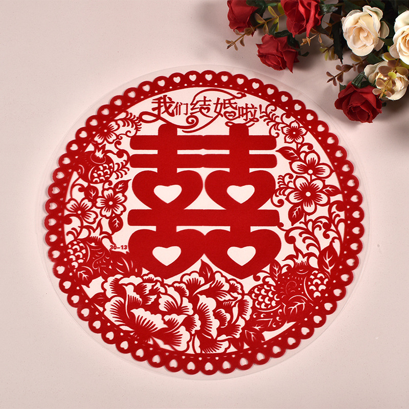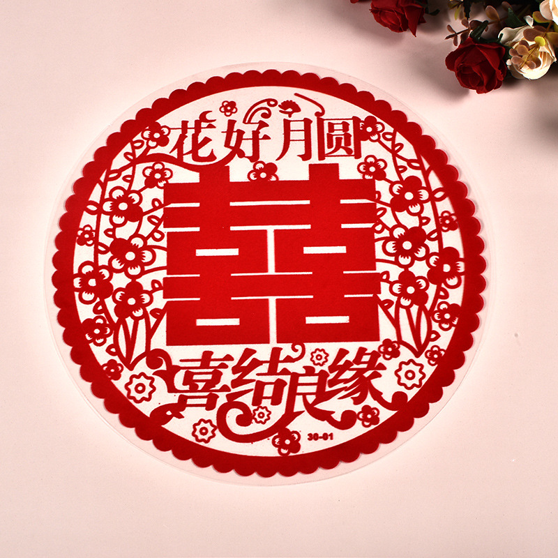 创意款静电贴喜字婚房布置塑料静电喜贴结婚用品窗花喜植绒