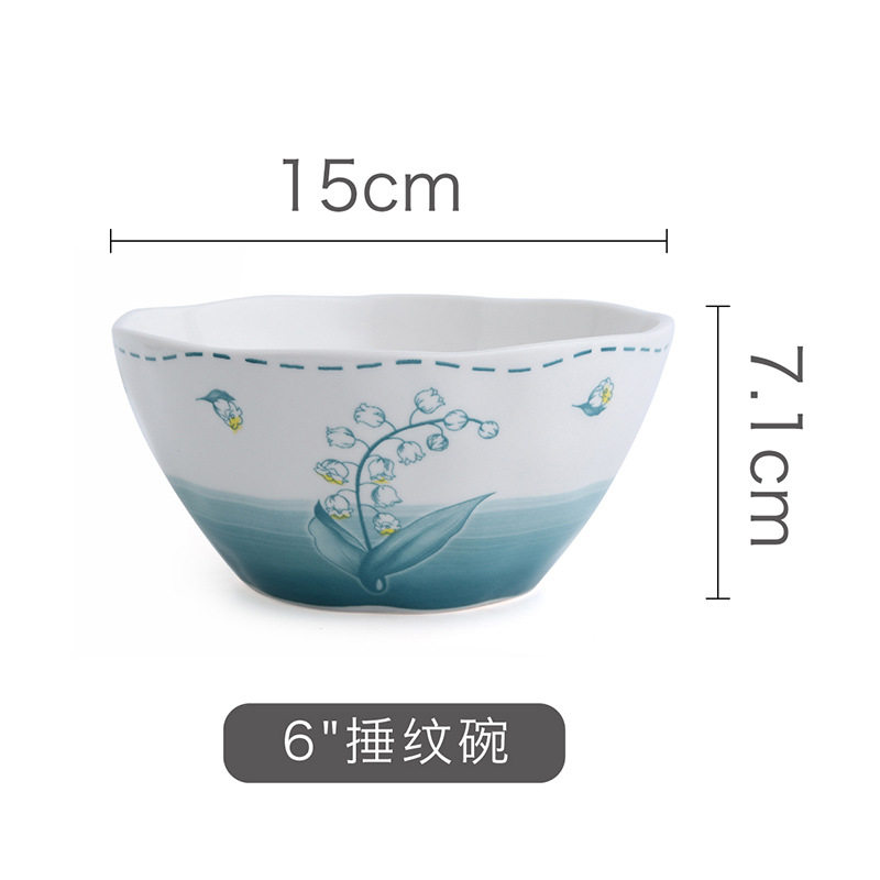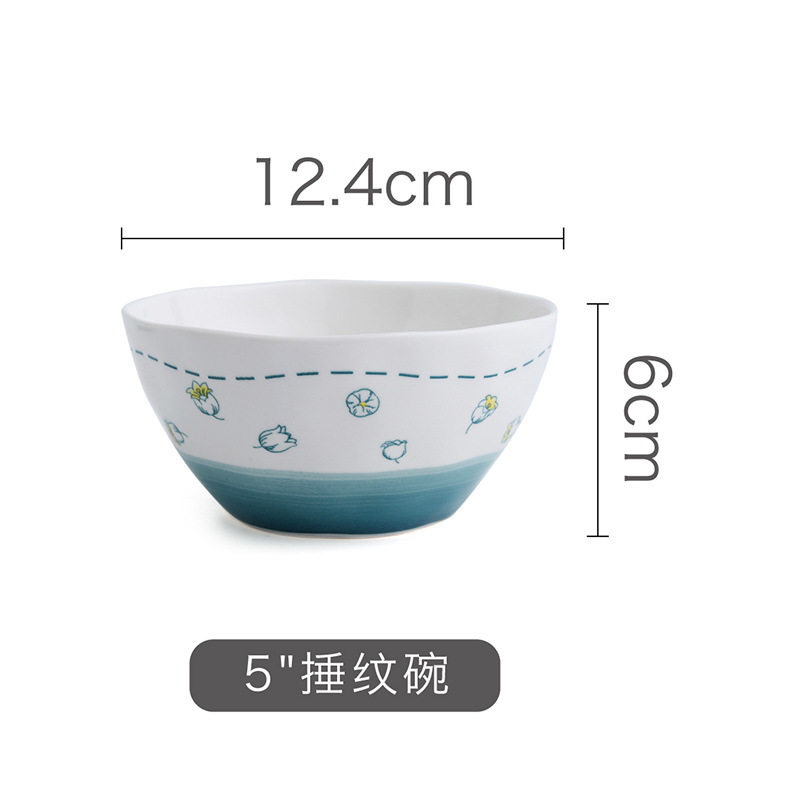 听风陶瓷饭碗釉下彩餐具组合家用米饭碗汤碗乔迁碗盘