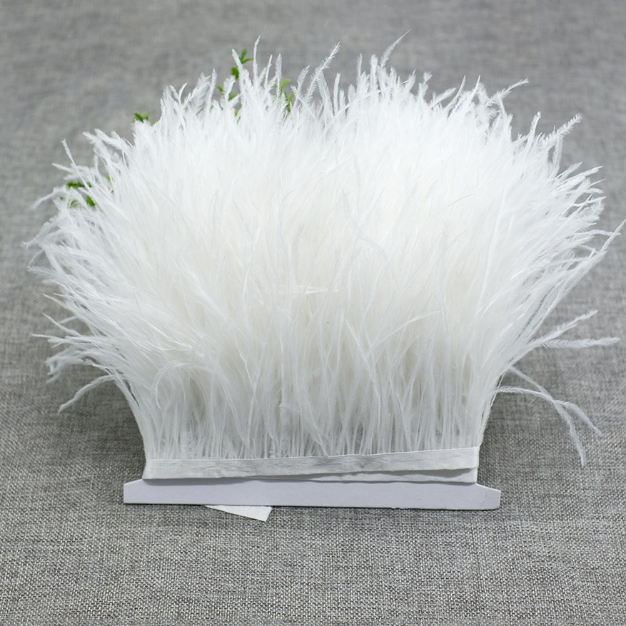 现货批发8-10厘米鸵鸟毛布边服装装饰辅料彩色鸵鸟羽毛布带羽毛