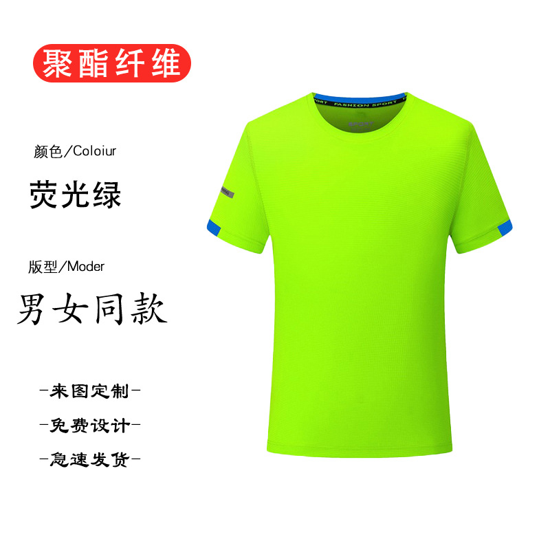 反光圆领拼色速干T恤印logo广告衫班服工作服短袖印字印花