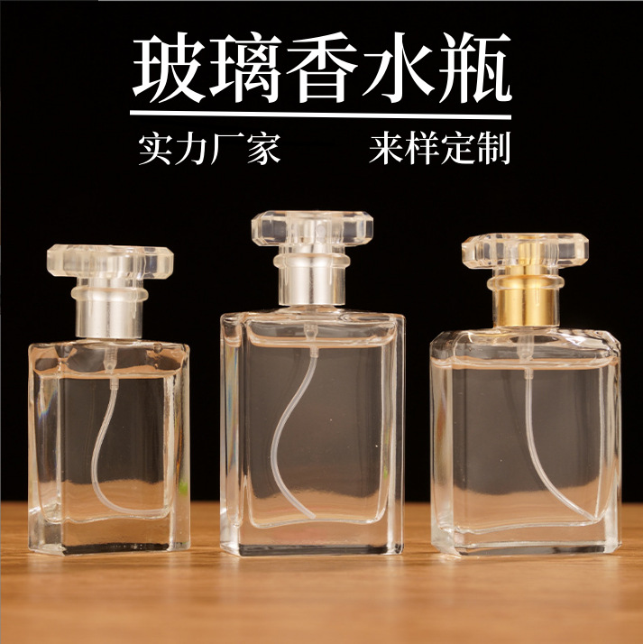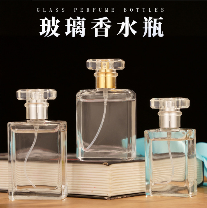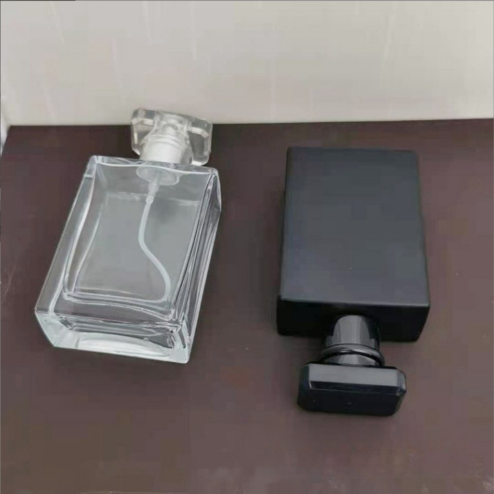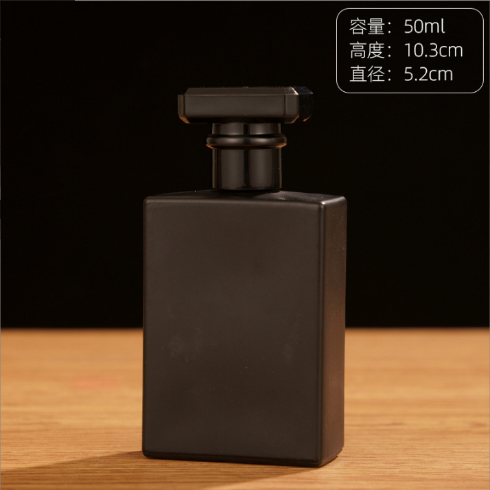 厂家批发方形玻璃香水瓶螺口50ml旋转香水喷雾瓶透明黑色玻璃瓶