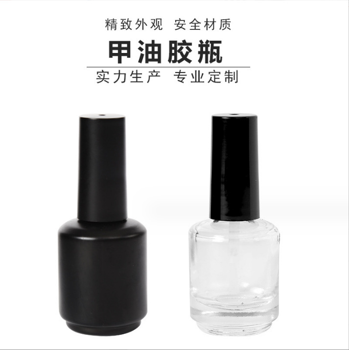 厂家批发指甲油瓶15ML玻璃甲油胶空瓶CND指甲油胶瓶光疗胶哑光黑