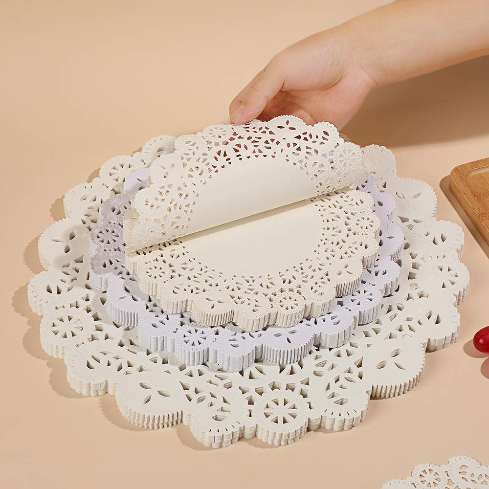 圆形镂空花底纸餐盘垫如意花型隔油纸小吃垫纸食品镂空油炸垫纸