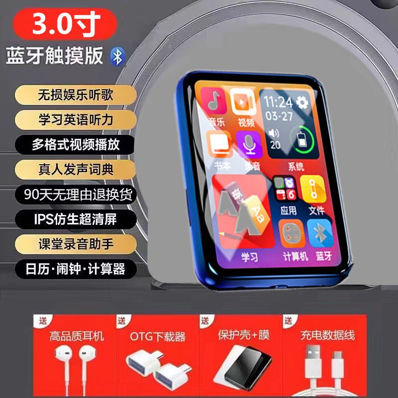 全面屏mp3随身听学生mp4蓝牙音乐播放器外放便携触屏mp5英语词典