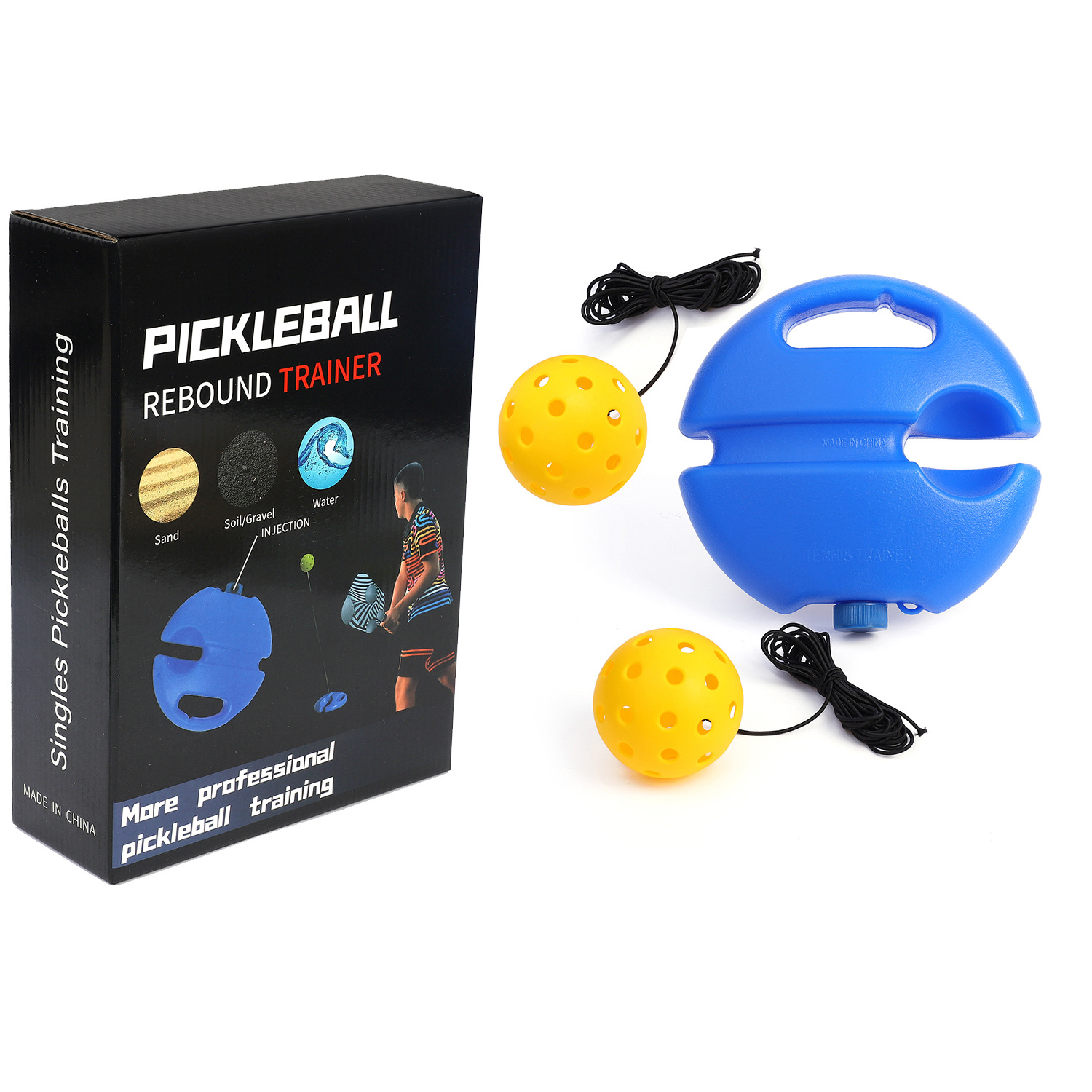 匹克球训练器备用球弹力绳彩盒装洞洞球带线PE高弹威浮厂家直销