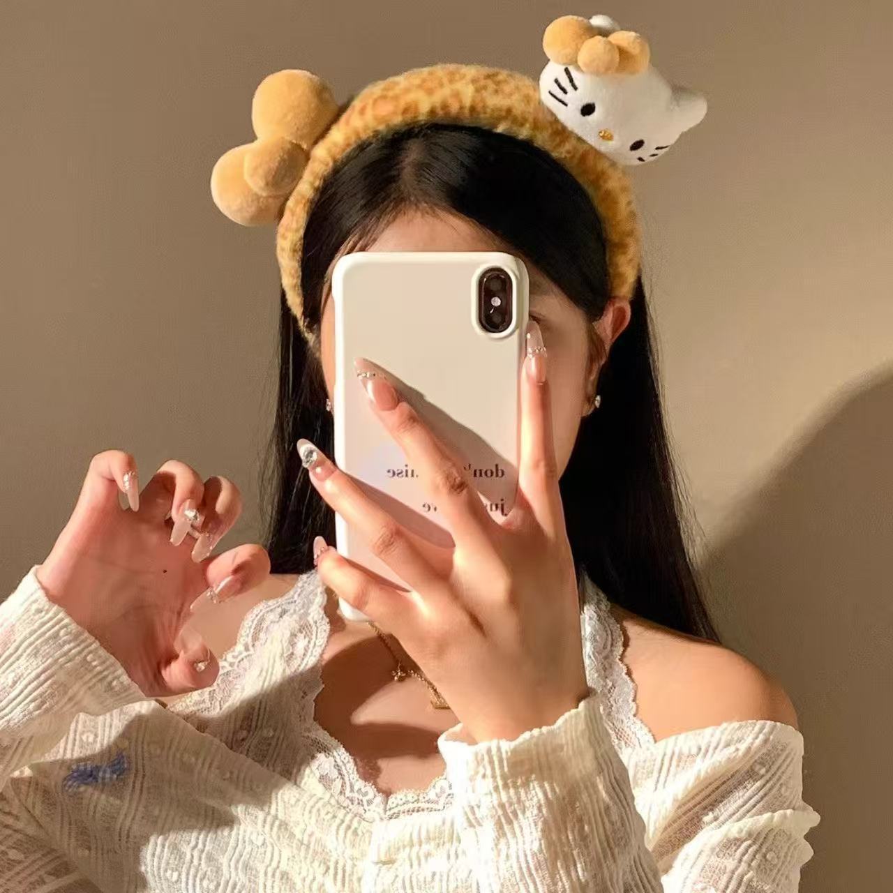 5254豹纹猫发箍-浅咖花朵
