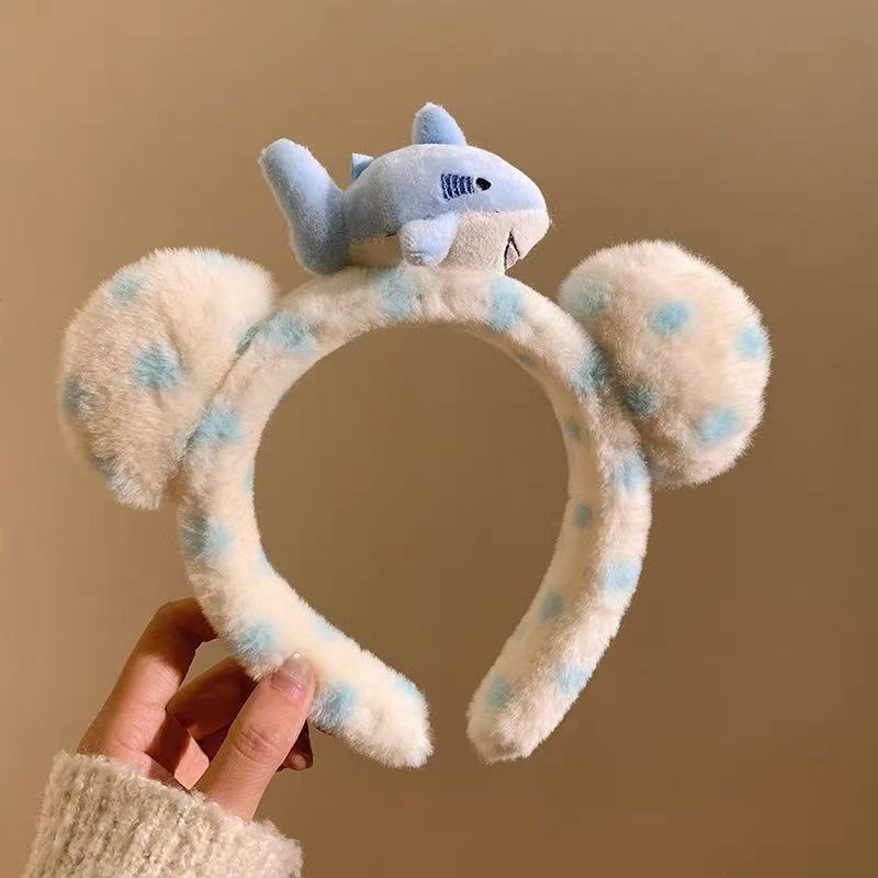5979毛绒蓝波点发箍-鲨鱼