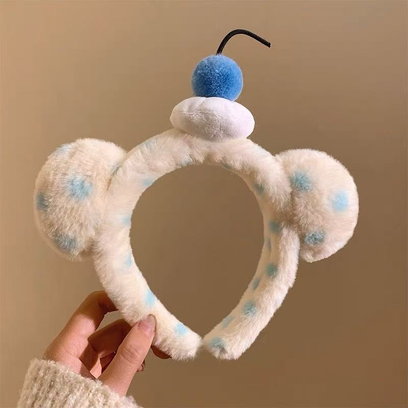 5979毛绒蓝波点发箍-樱桃