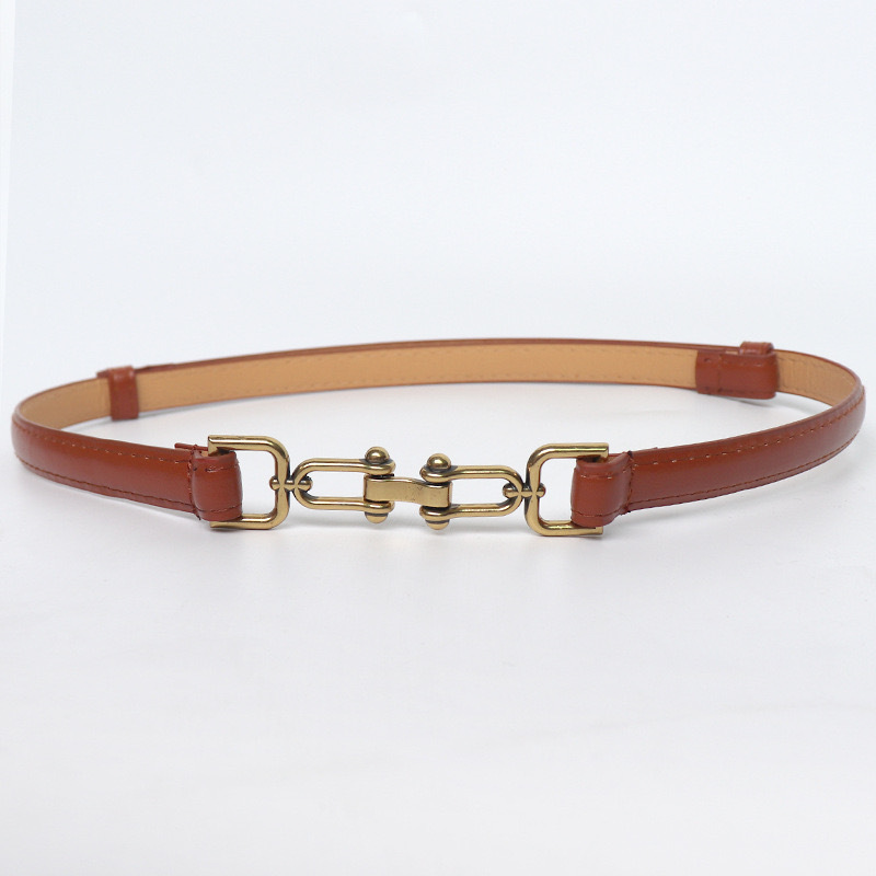 免打孔哑光卡扣调节腰带女裙带装饰连衣裙黑色细皮带配衬衫