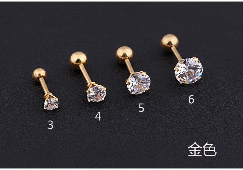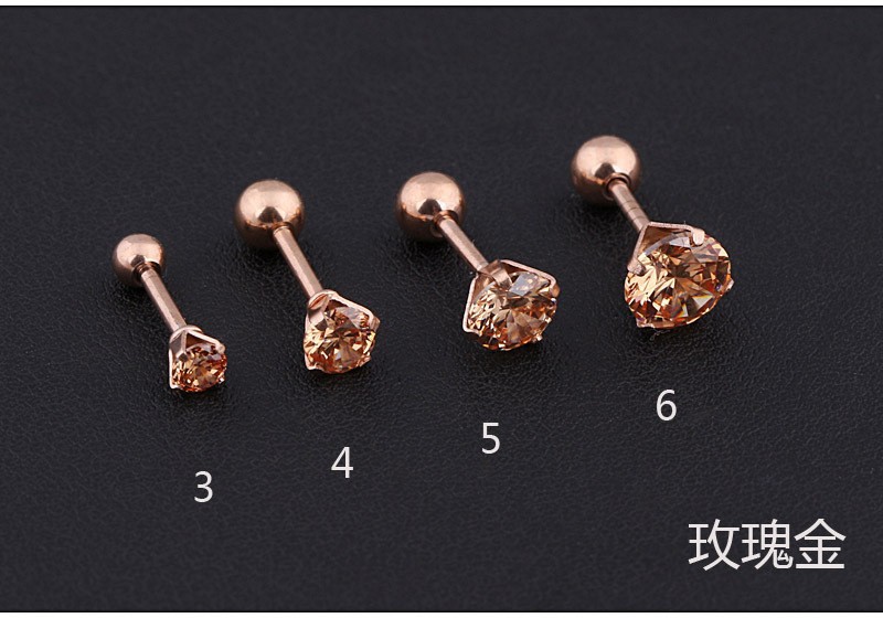 跨境专供圆形3A锆石耳钉耳环钛钢圆形耳钉不锈钢真空电镀彩色耳钉
