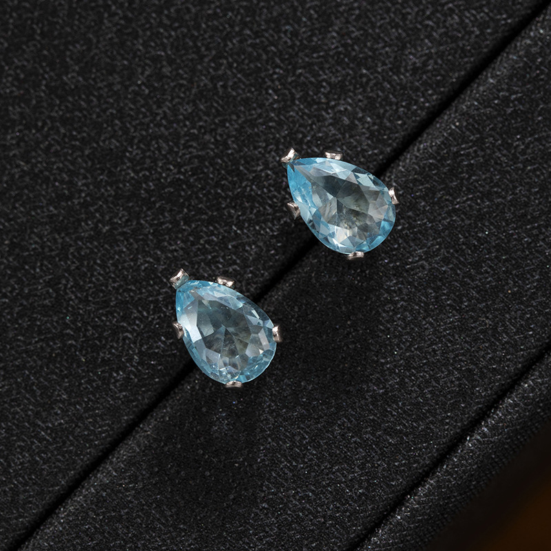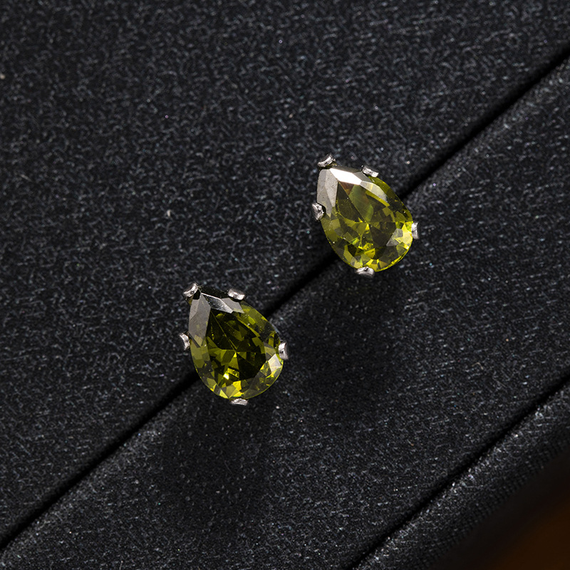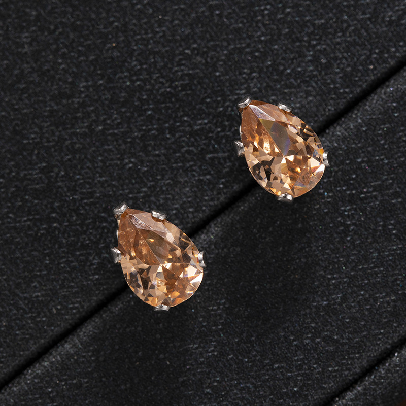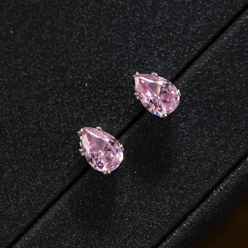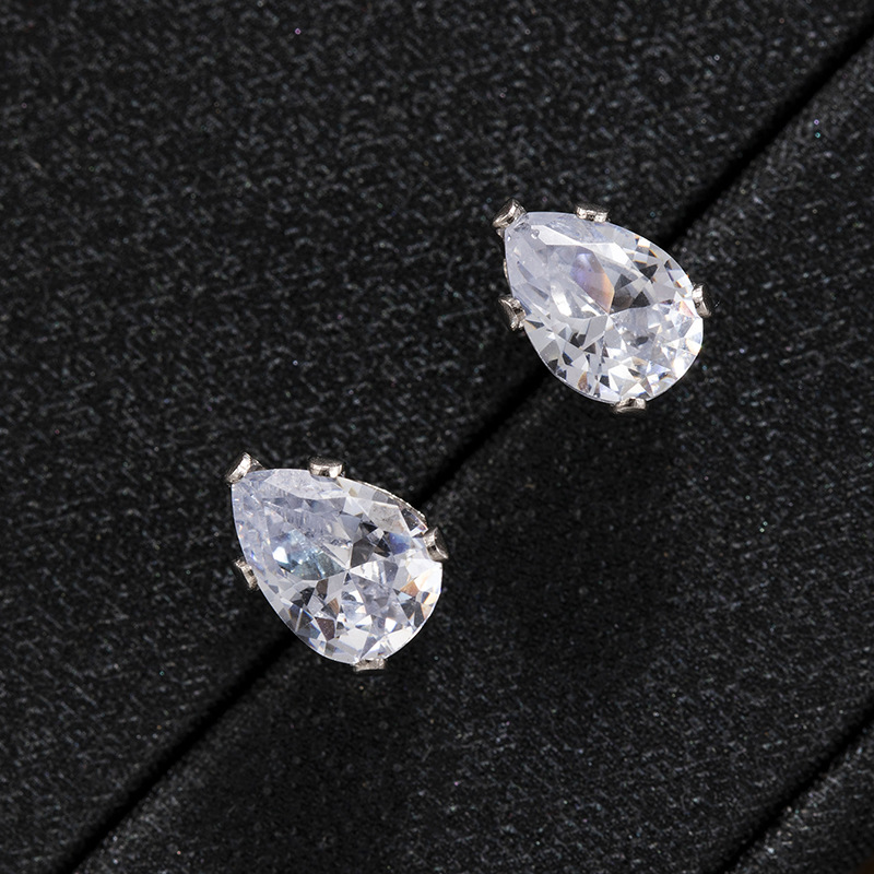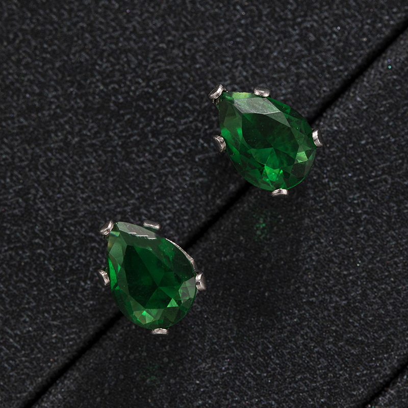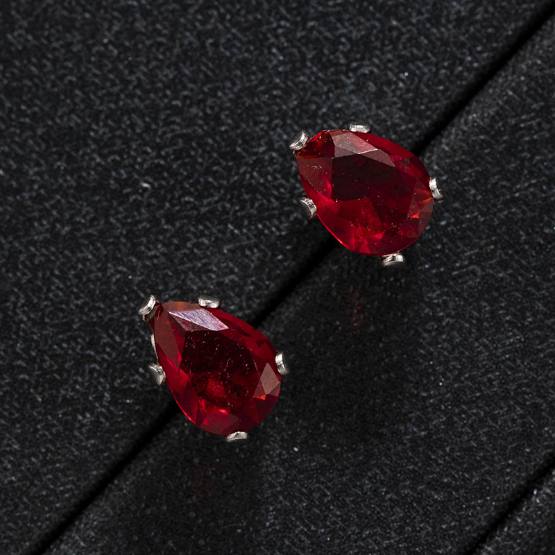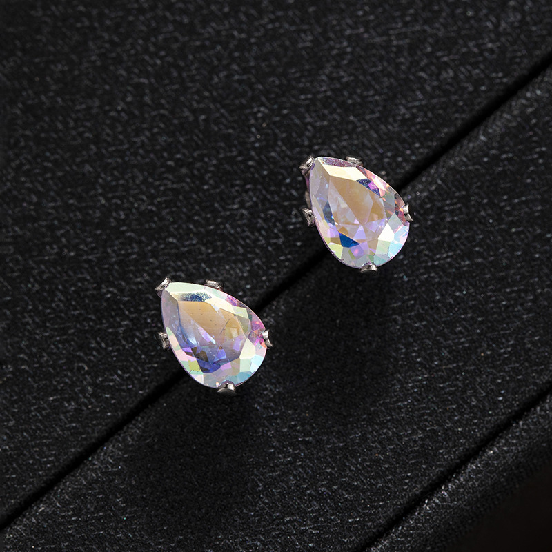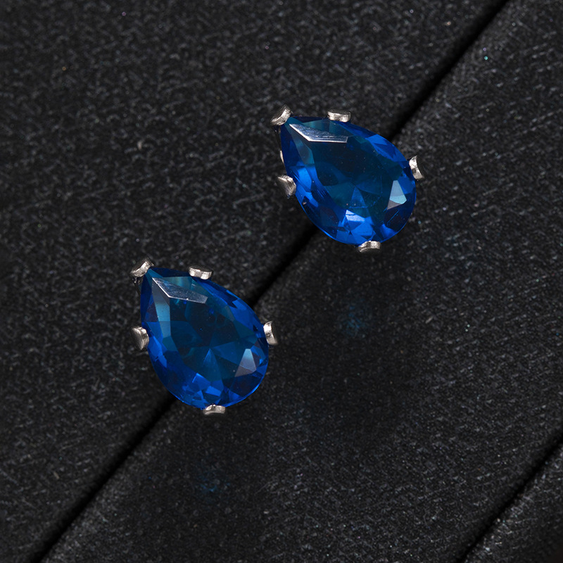 跨境时尚彩色水晶五爪水滴螺丝钛钢养耳洞耳钉男女简约个性耳环