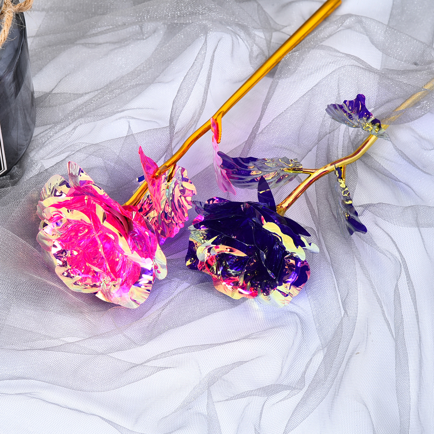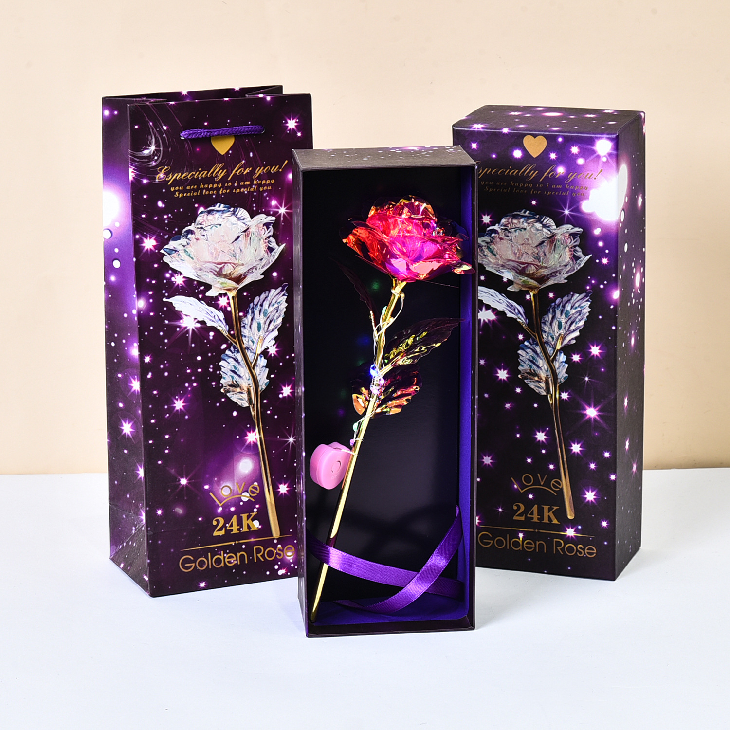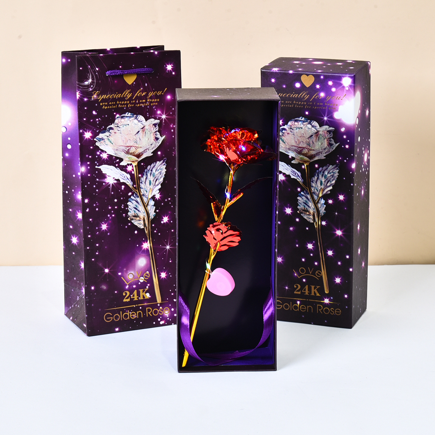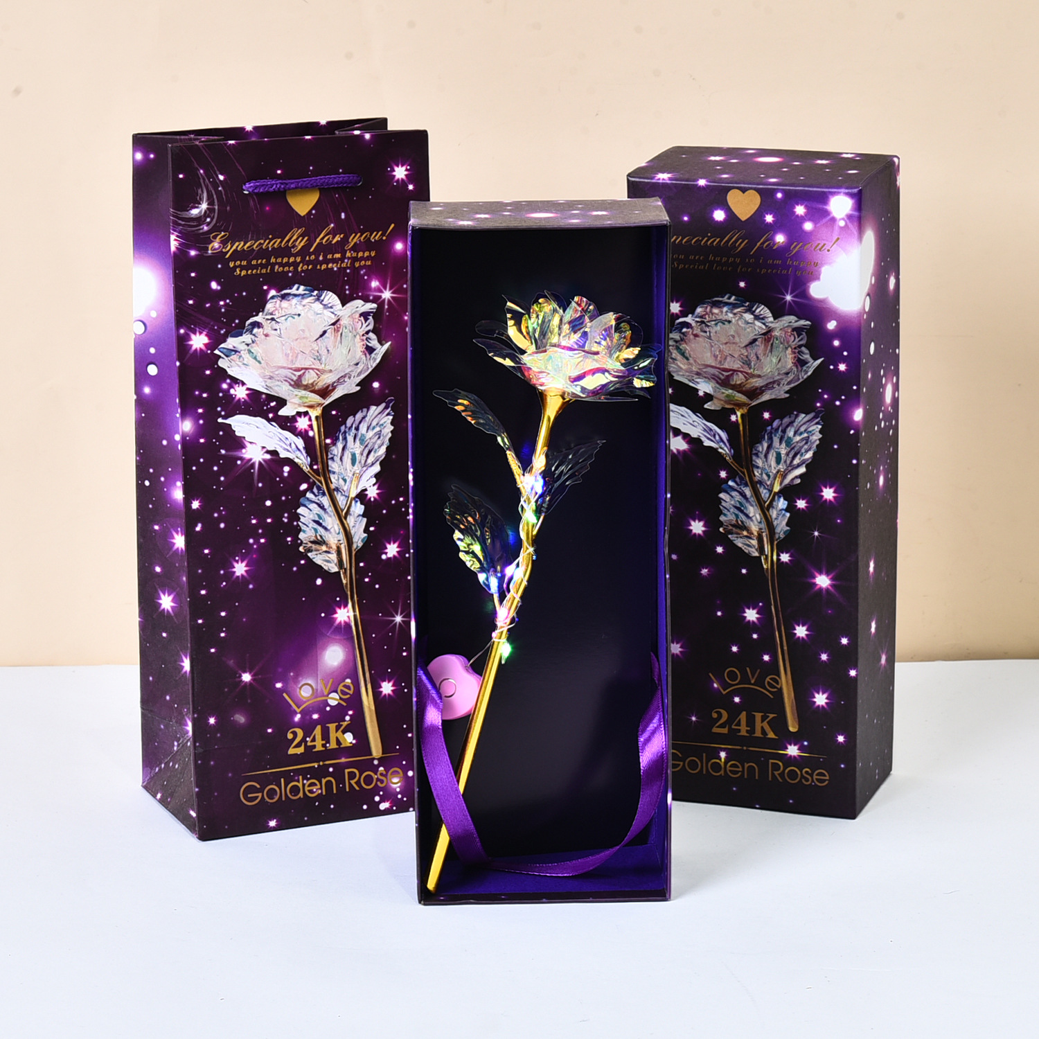 外贸热销情人节24K金箔玫瑰花镀金母亲节玫瑰花彩金彩灯套装礼盒