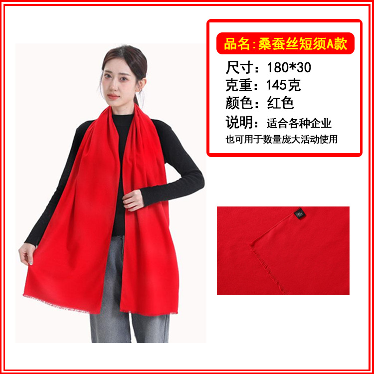 中国红大红色围巾定制logo印字同学聚会公司年会开业庆典活动刺绣