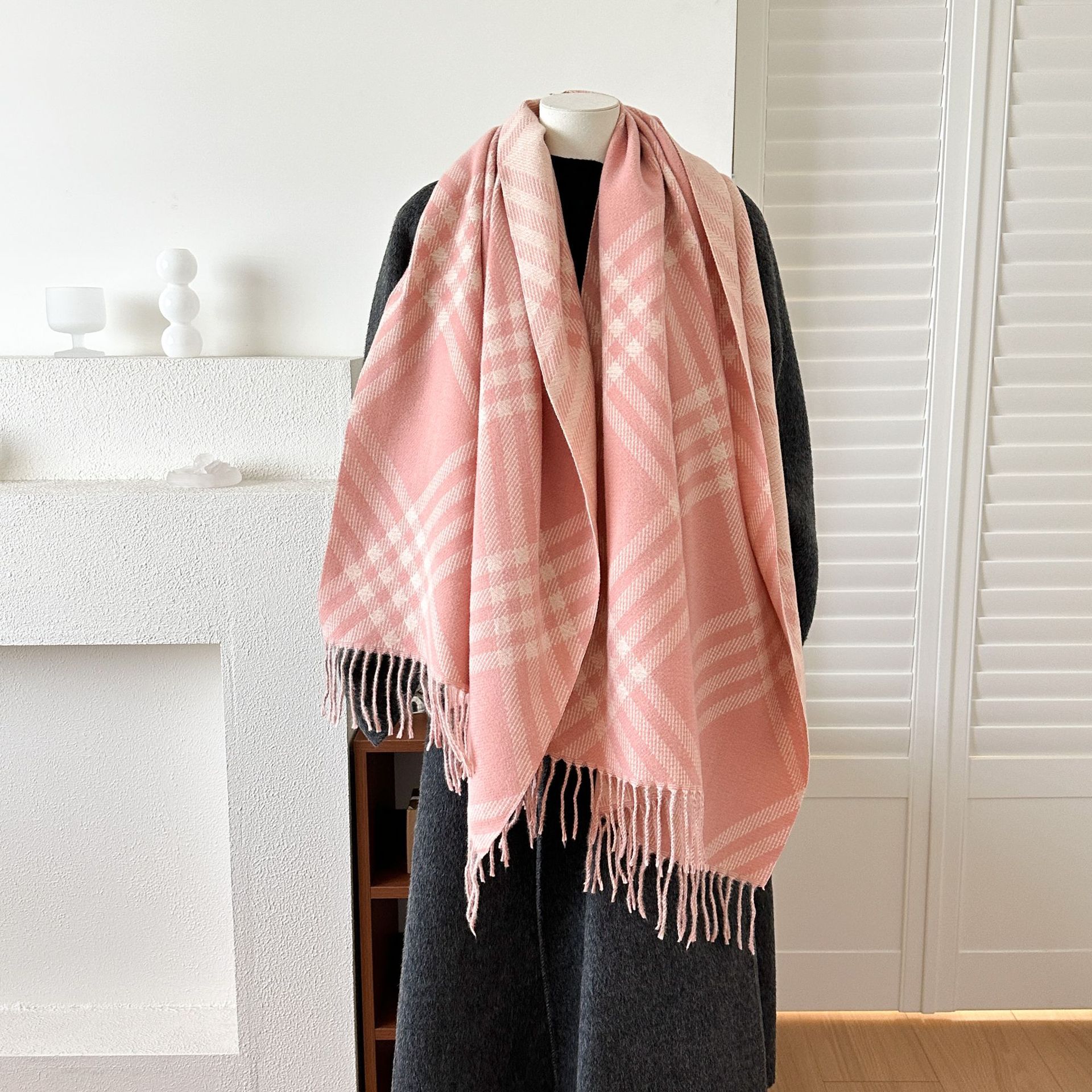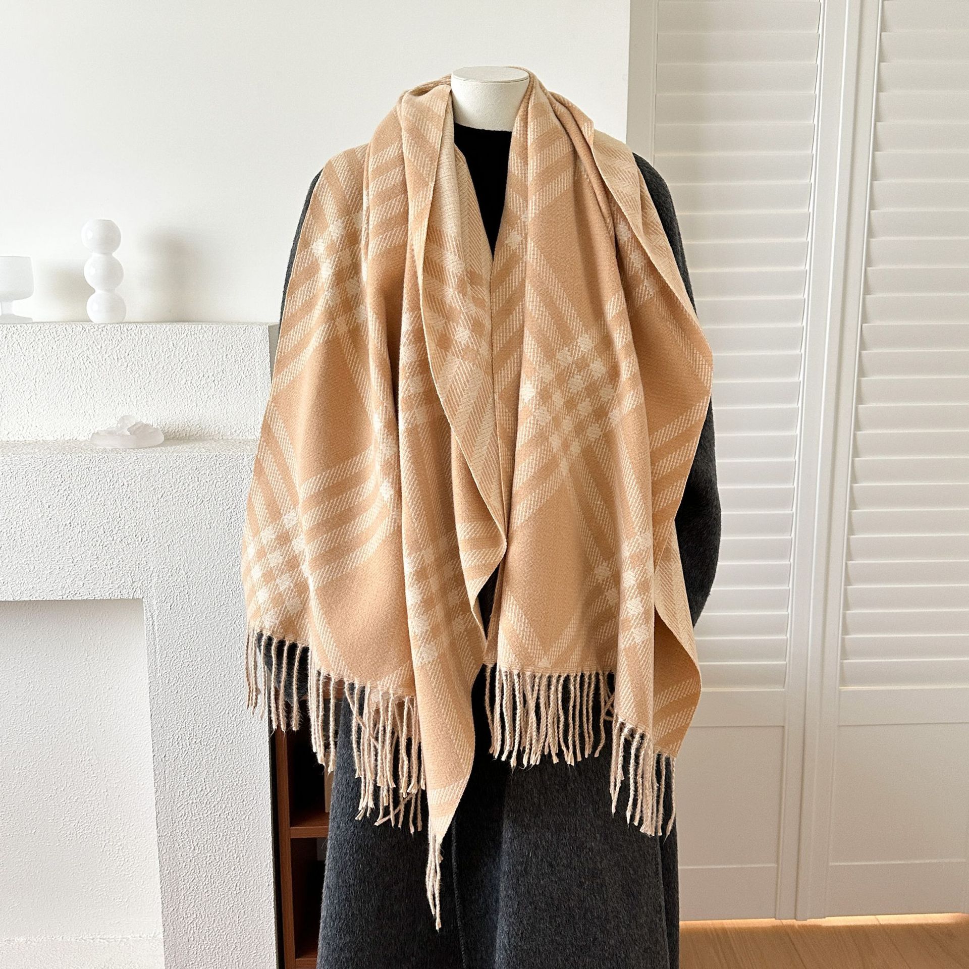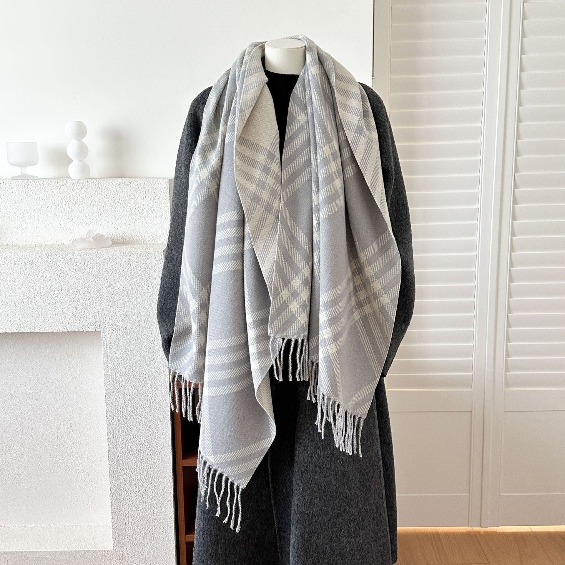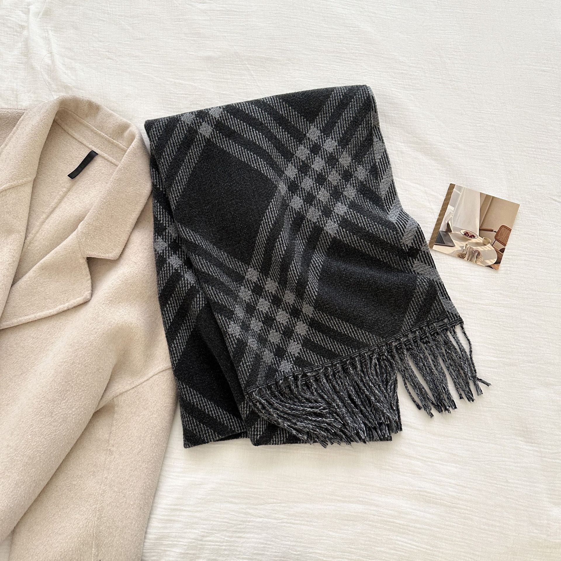 秋冬季双面格纹仿羊绒围巾女欧美高级感时尚休闲披肩保暖长须围脖