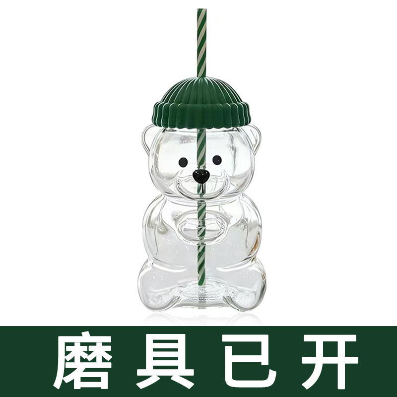 跨境创意圣诞节礼物小熊造型杯网红果汁饮料咖啡杯礼品杯吸管杯子