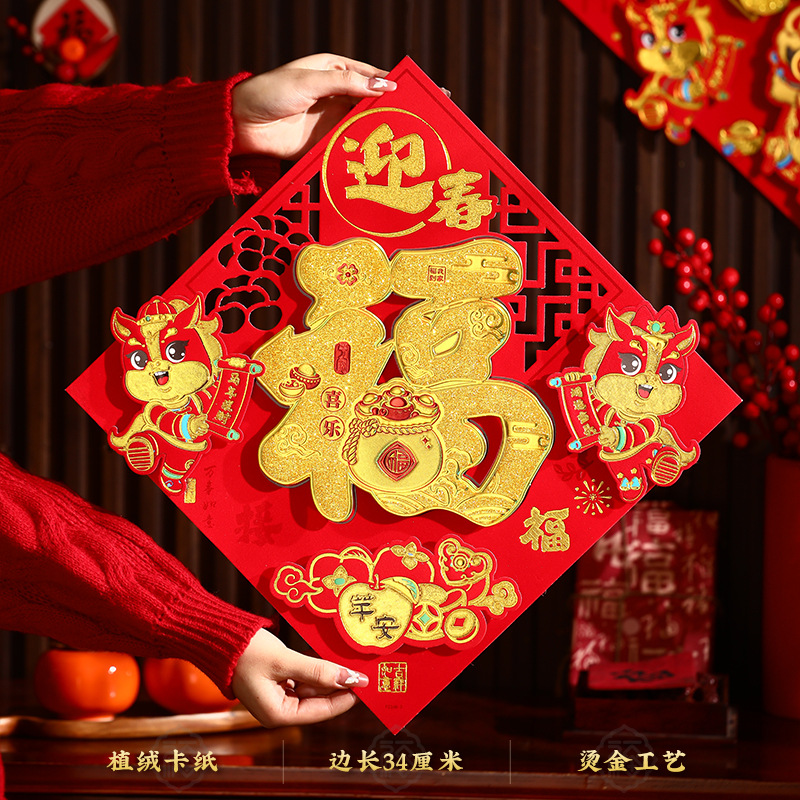 喜迎新春高端立体绒布福字帖马年自粘门贴2026新年入宅入户门福字