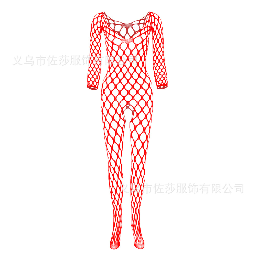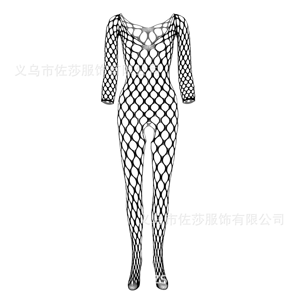 欧美性感情趣内衣长袖大网眼洞连身连体网袜网衣开裆透视w097
