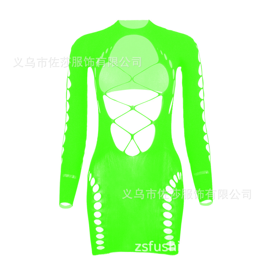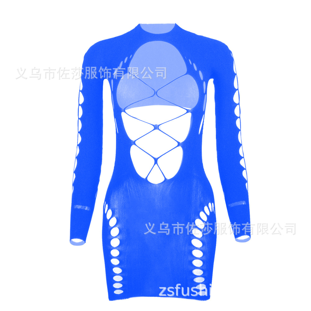 欧美情趣网衣性感渔网连体衣睡衣包臀裙长袖露背露乳紧身衣w635