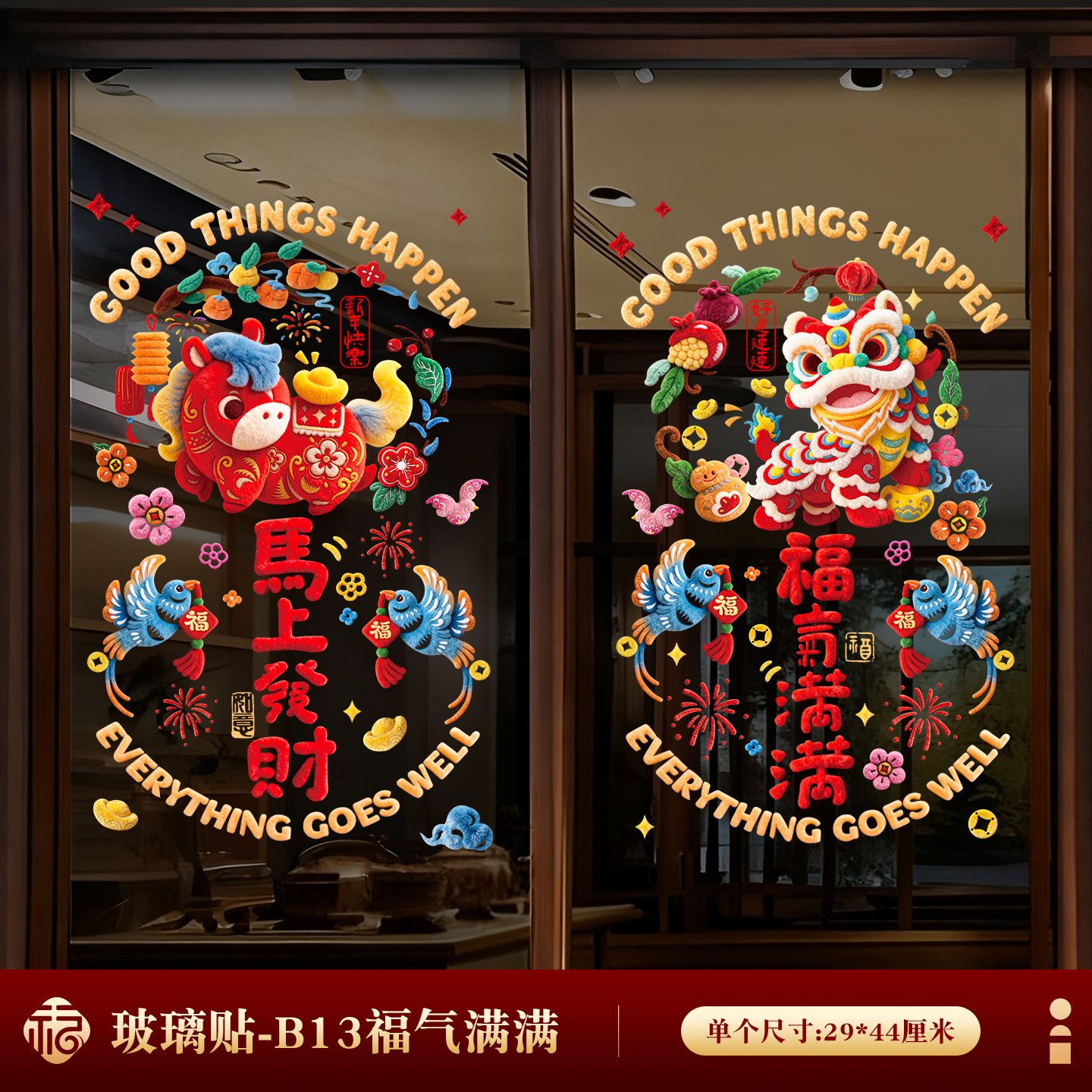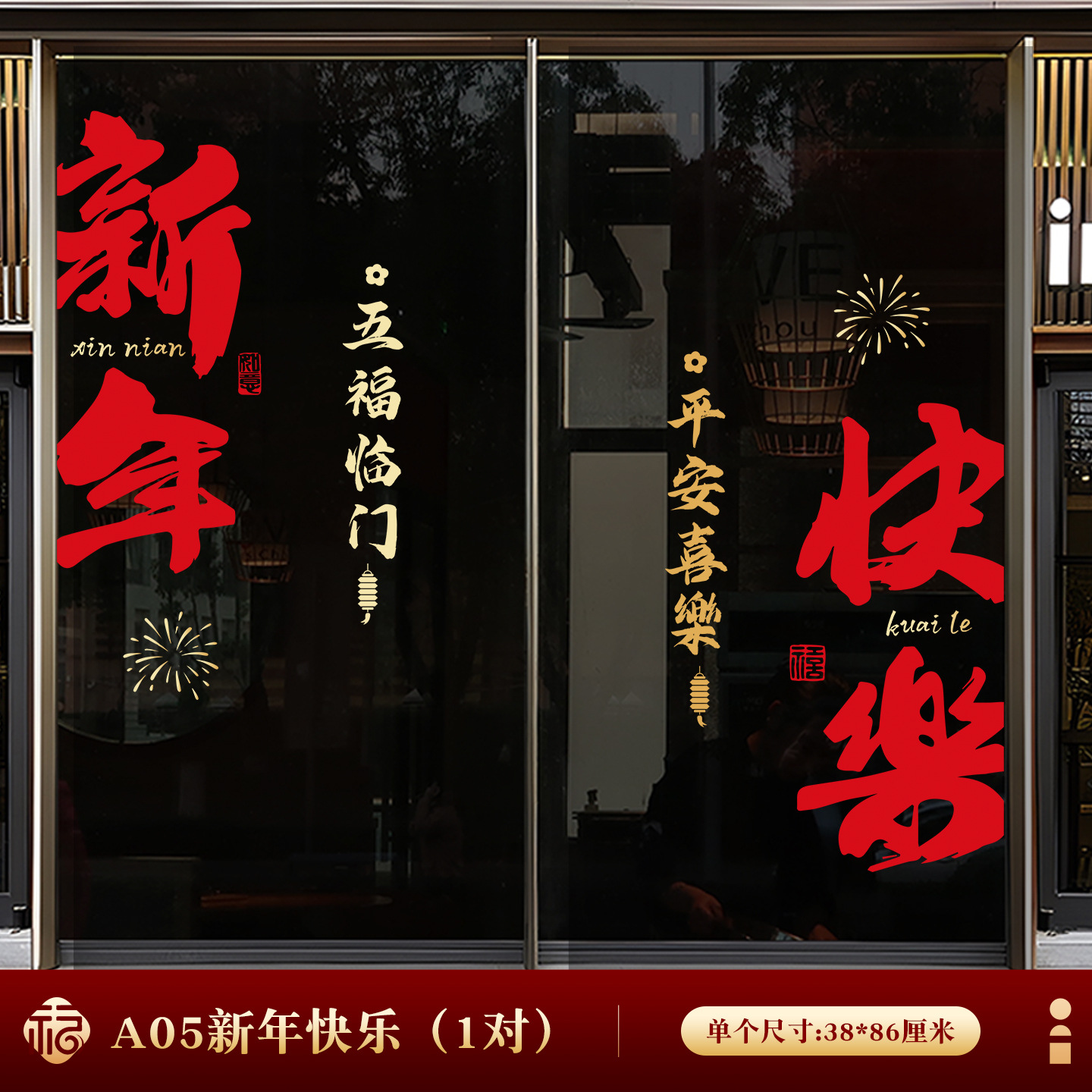 【五福临门①】玻璃贴(2张)