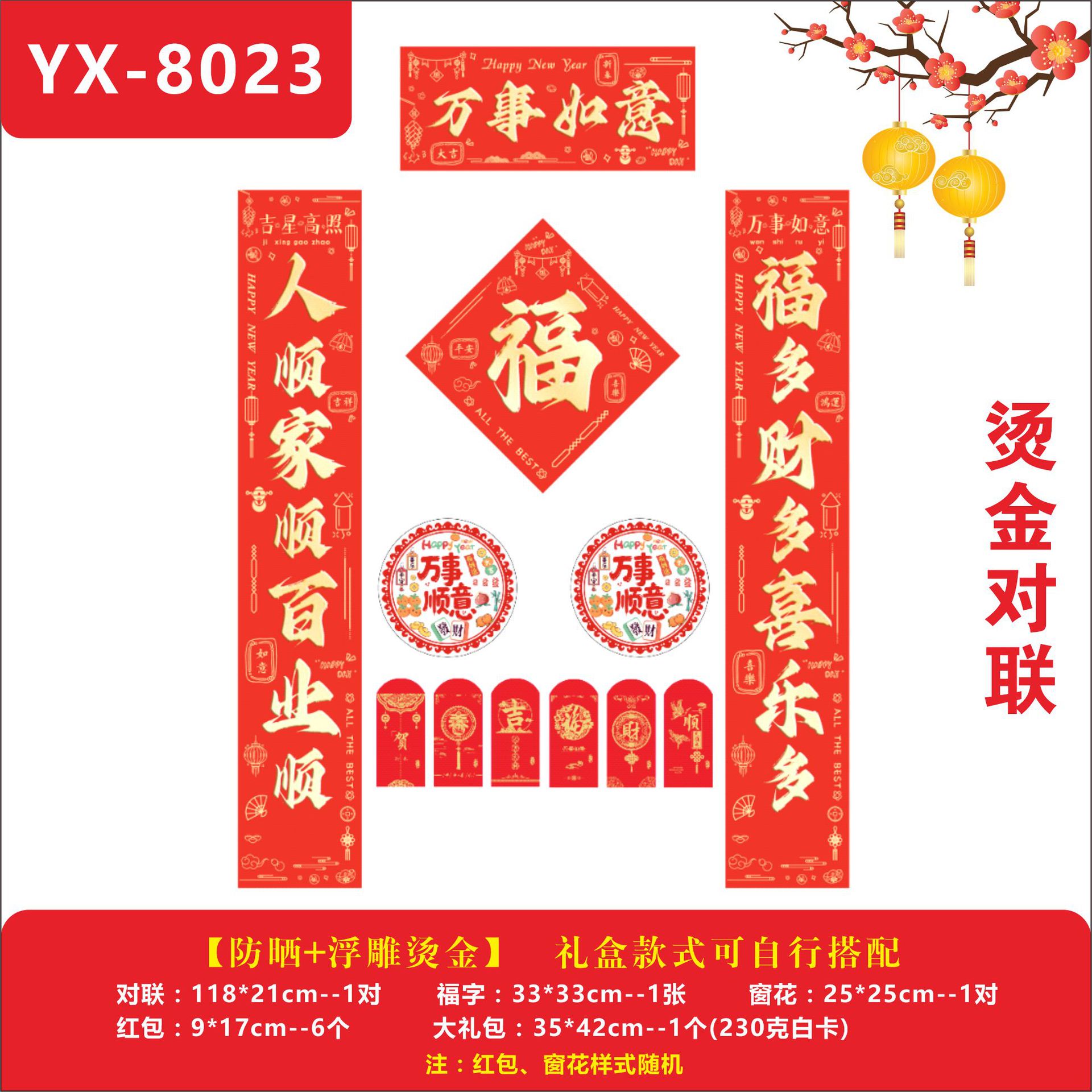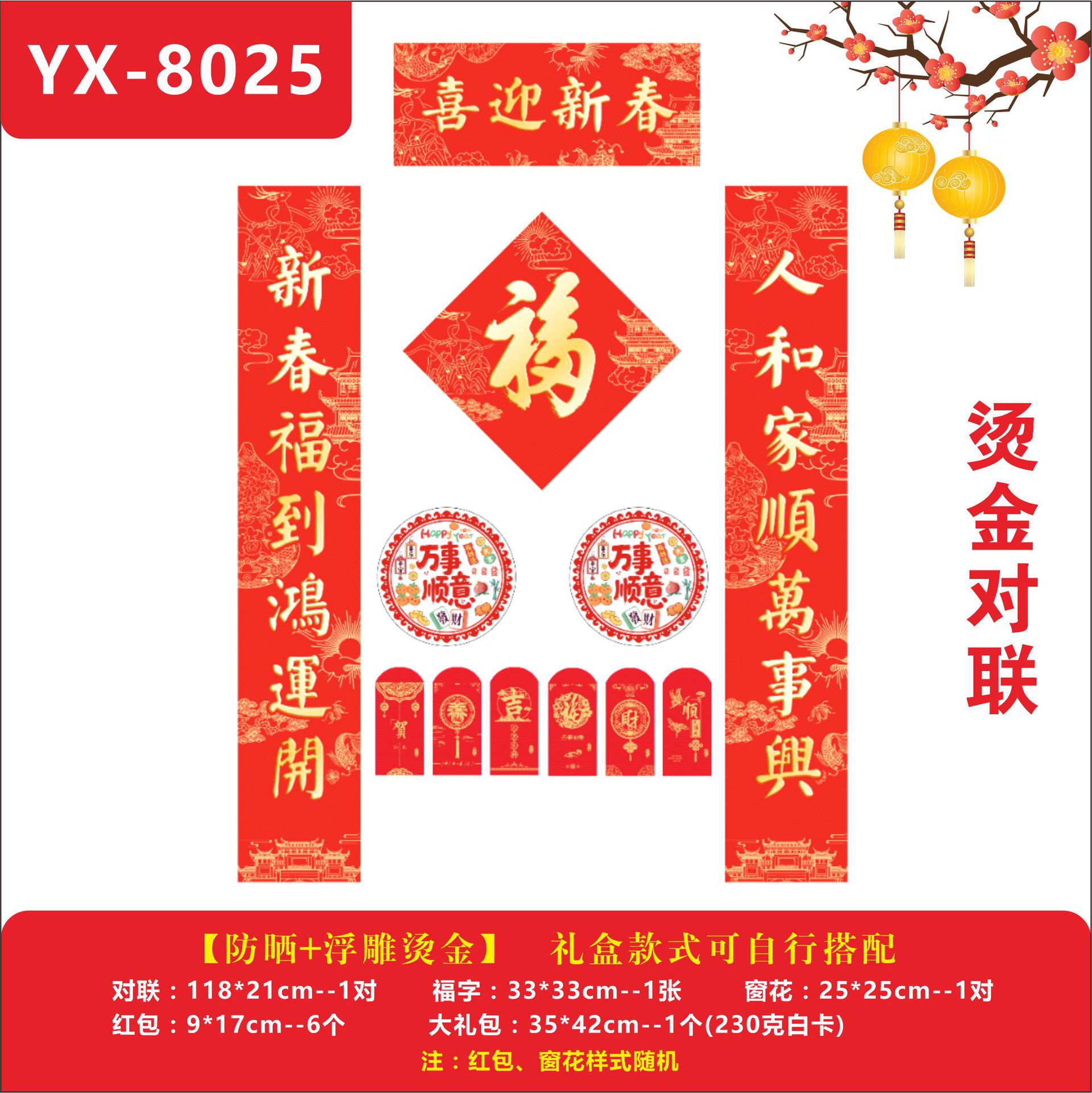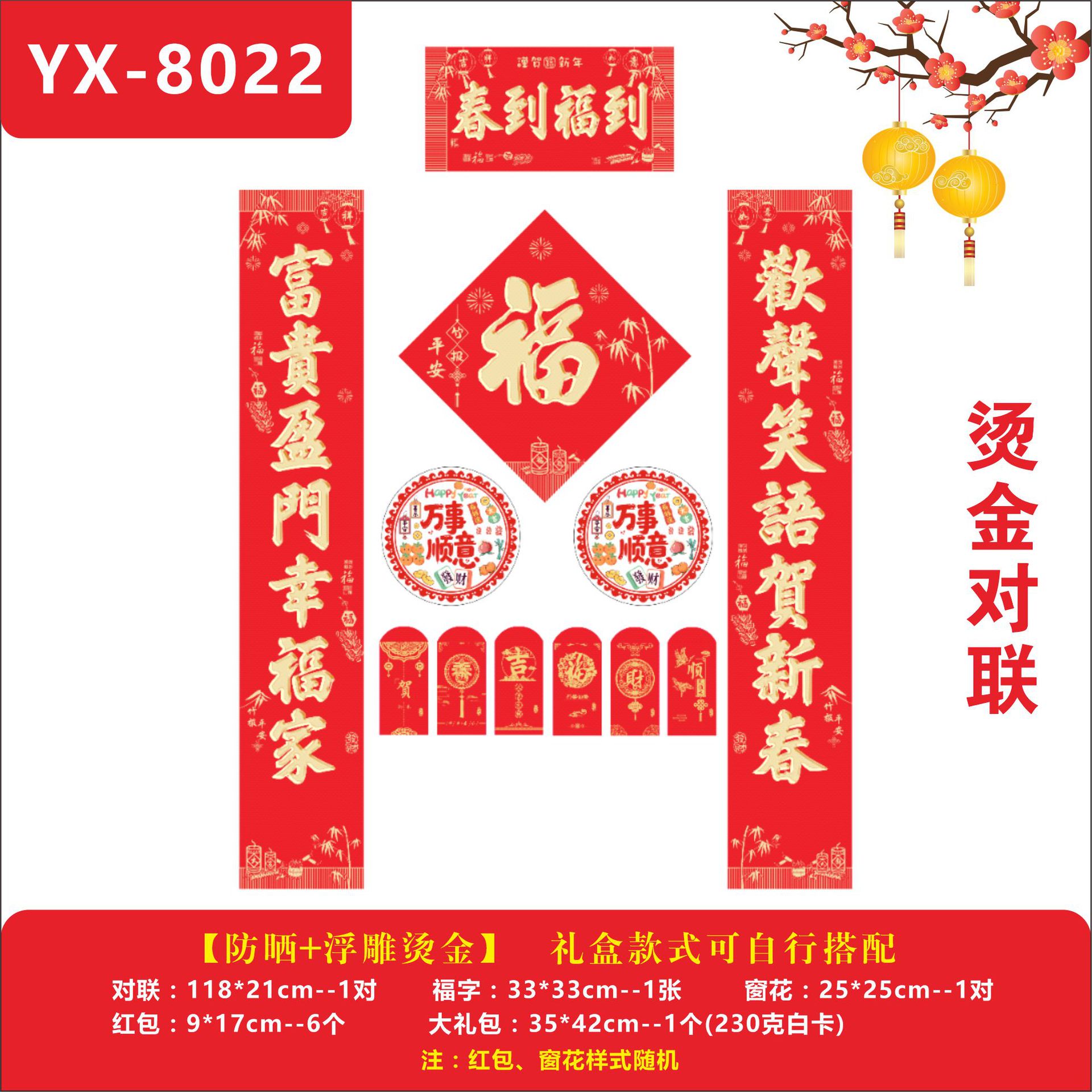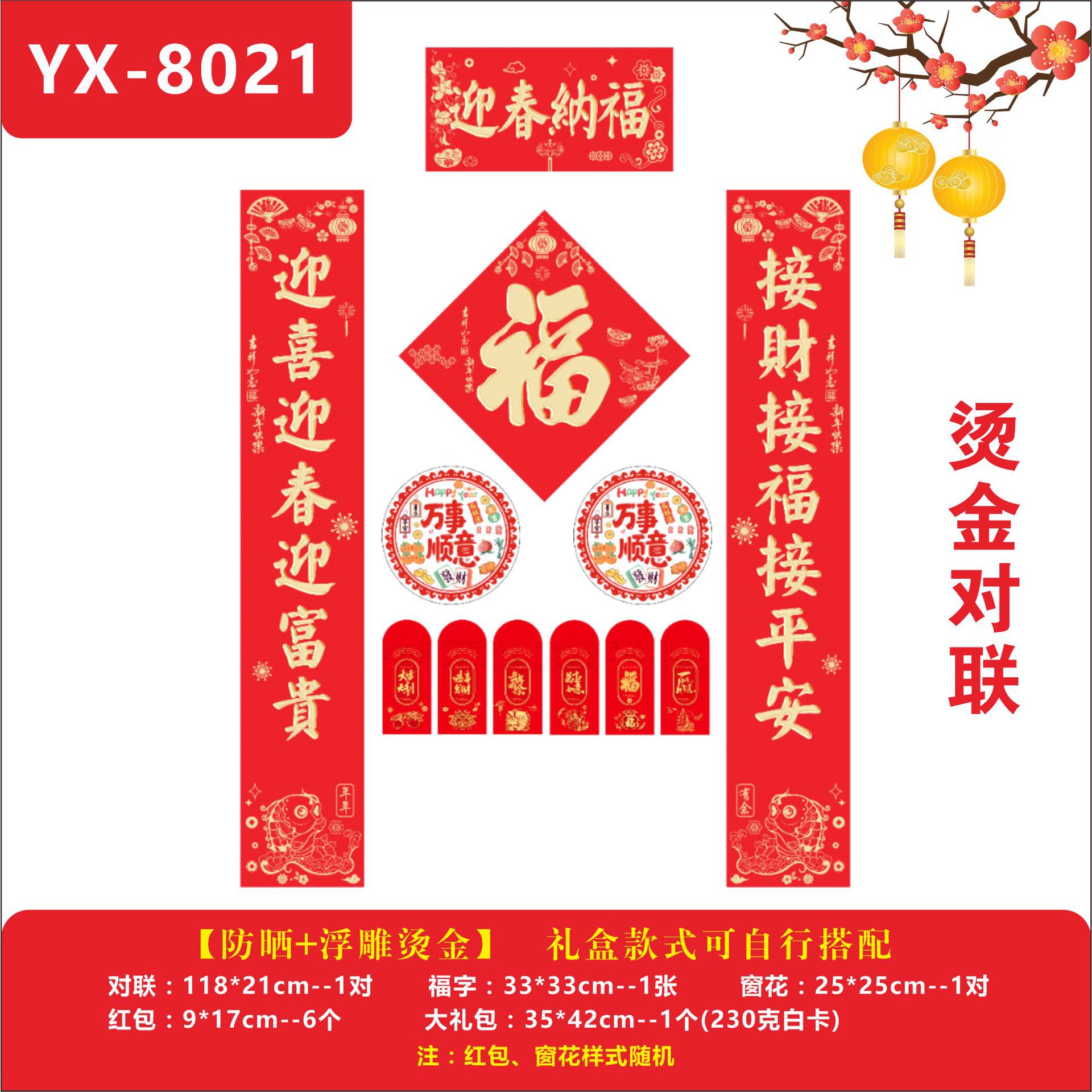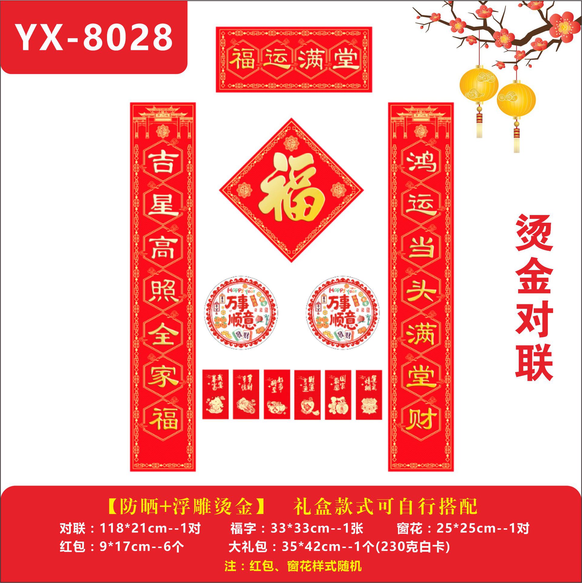 YX-8028【福运满堂】烫金对联1.18米烫金款