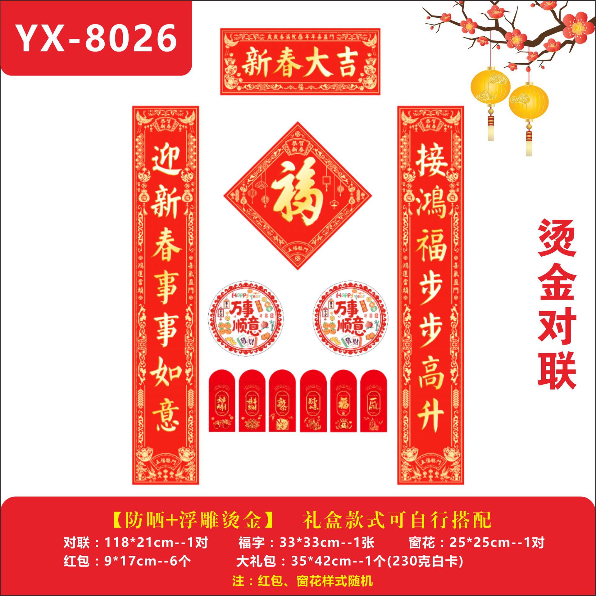 YX-8026【新春大吉】烫金对联1.18米烫金款