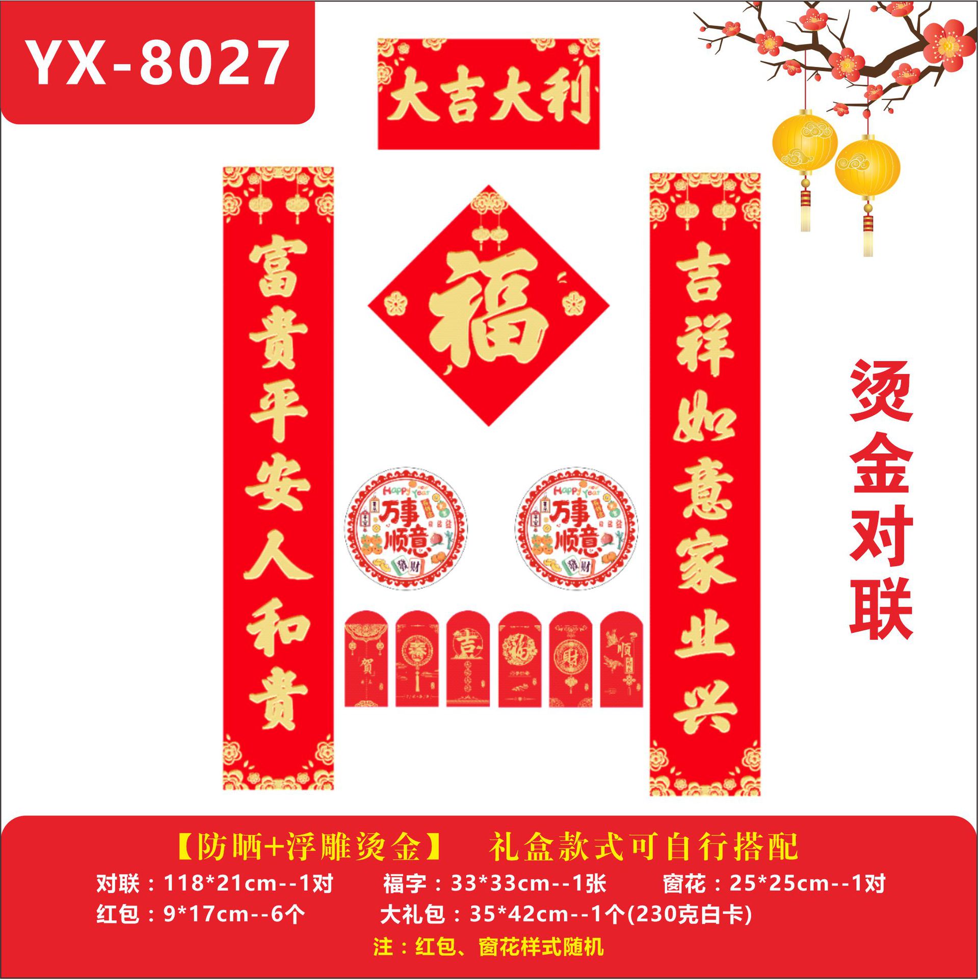 YX-8027【大吉大利】烫金对联1.18米烫金款