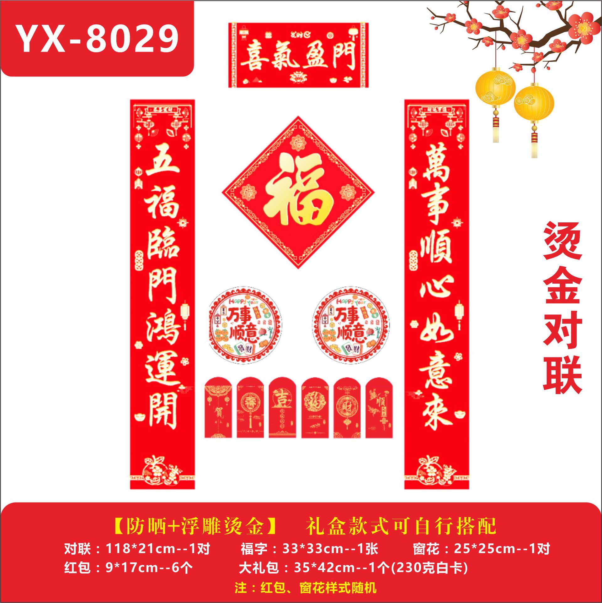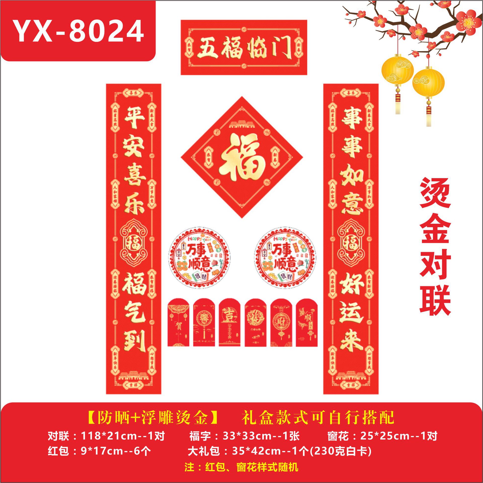 YX-8024【五福临门】烫金对联1.18米烫金款