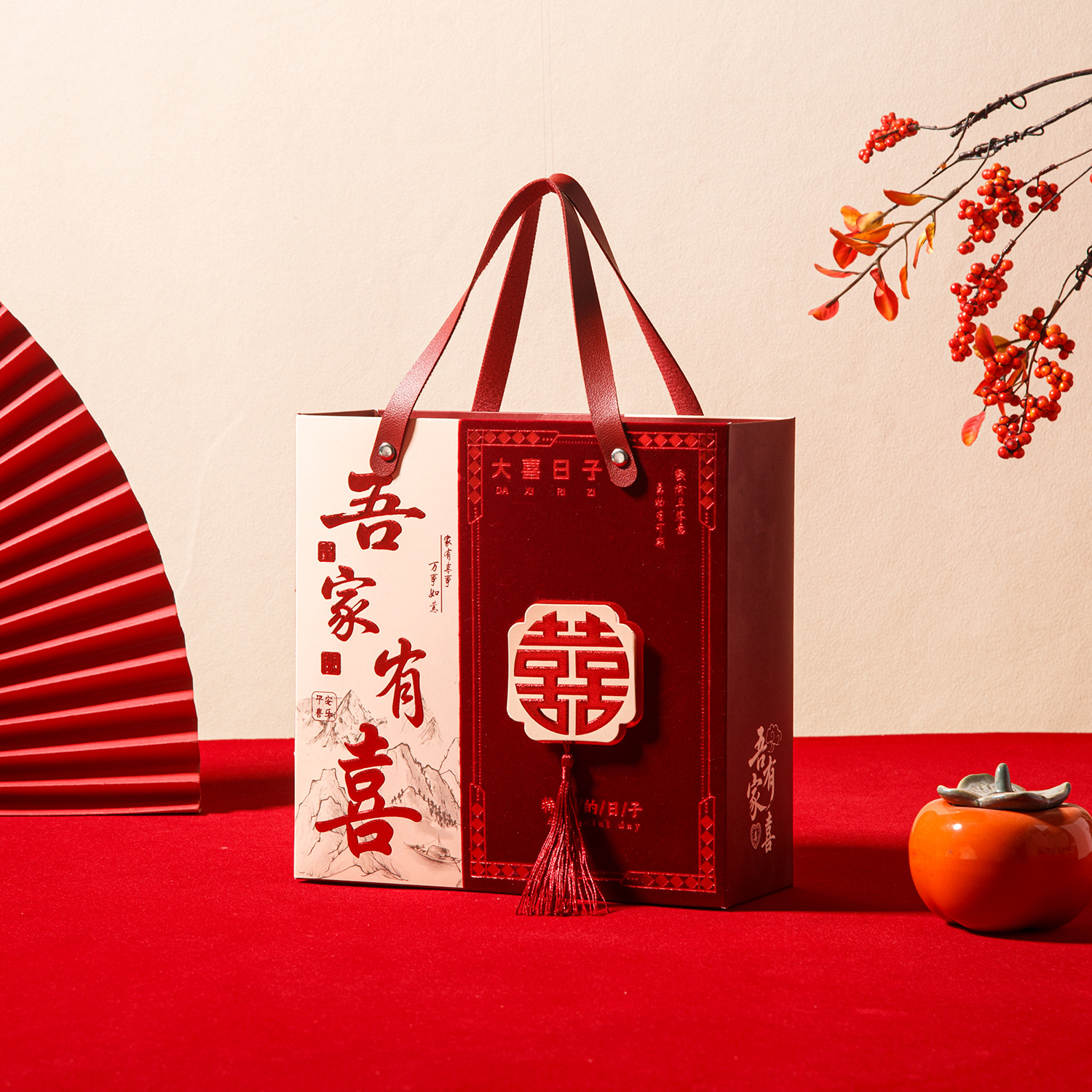 结婚喜糖盒子中式立体抽屉式手提吾家有喜回礼伴手礼礼盒现货批发