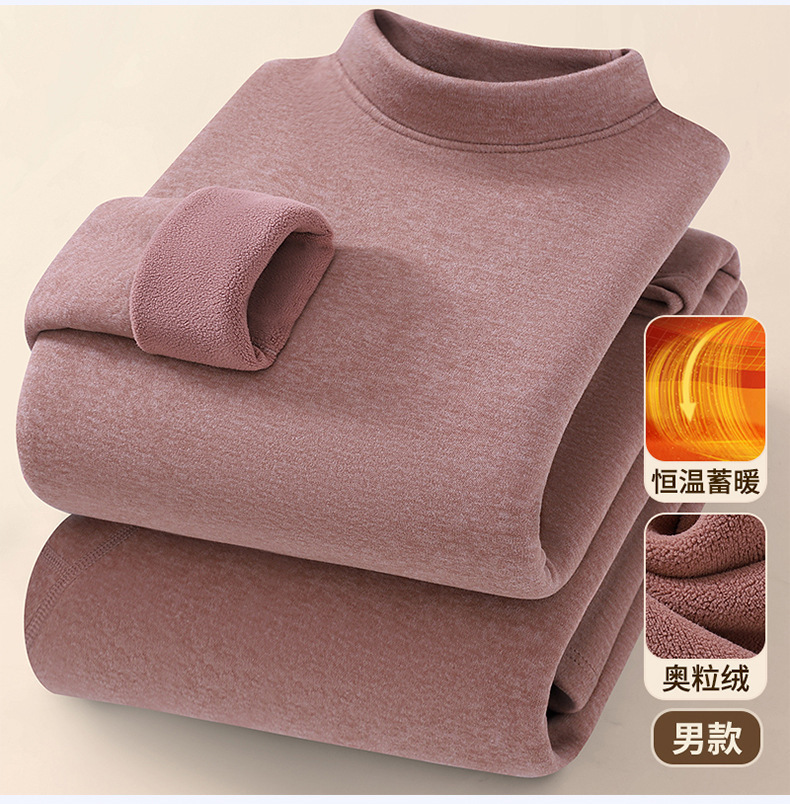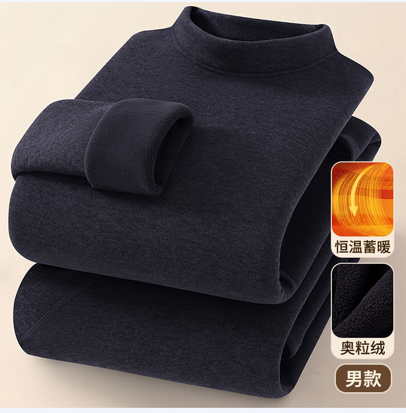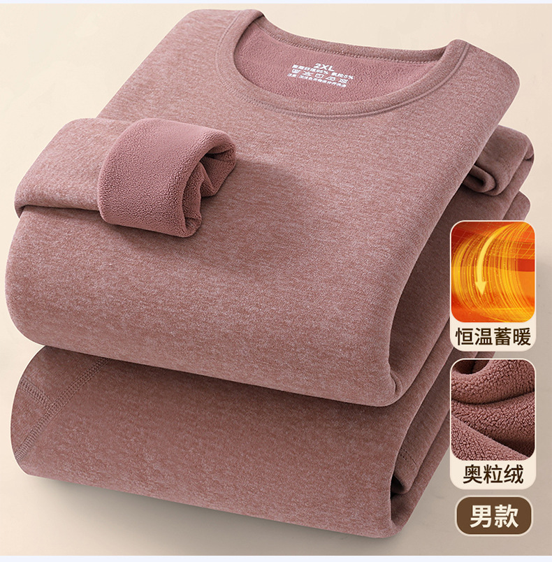 新款男士保暖内衣套装加绒加厚奥粒绒秋衣秋裤圆领保暖内衣男批发