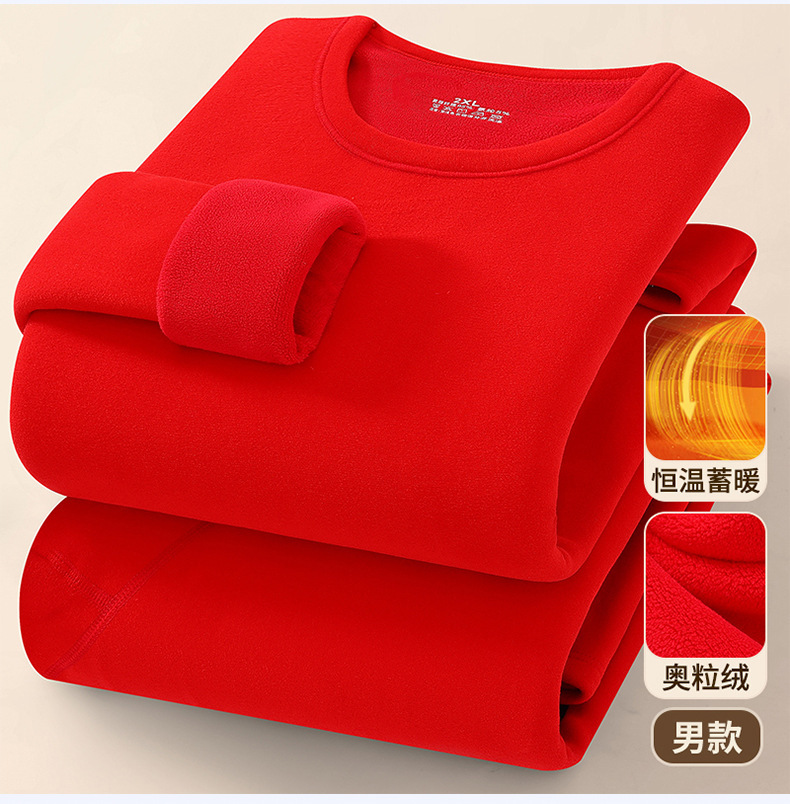 奥粒绒保暖套装-圆领大红色【男款】