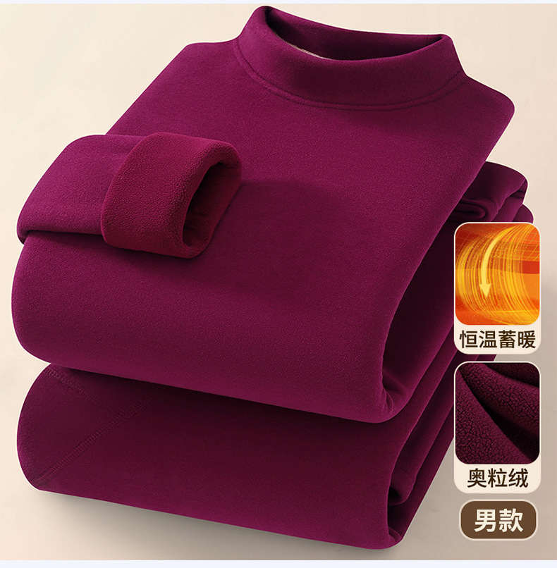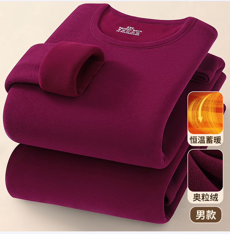 奥粒绒保暖套装-圆领酒红色【男款】
